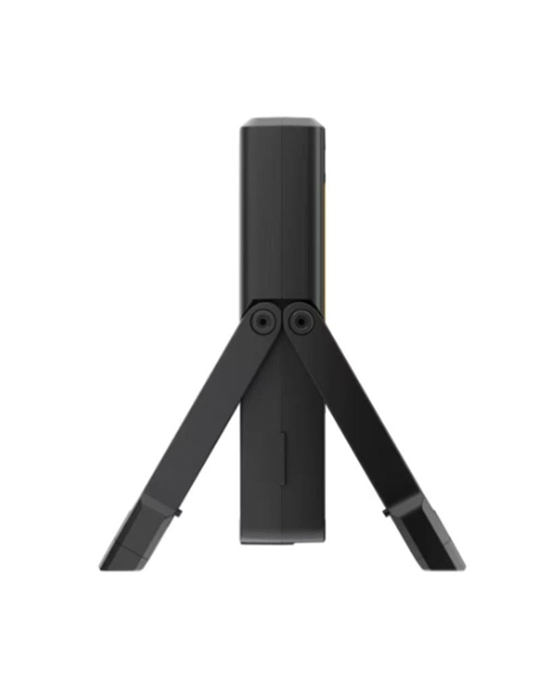 Verlängerte Bauform mit amber LEDs und rutschfester klappbarer Basis; robustes Design für anspruchsvolle Bedingungen.