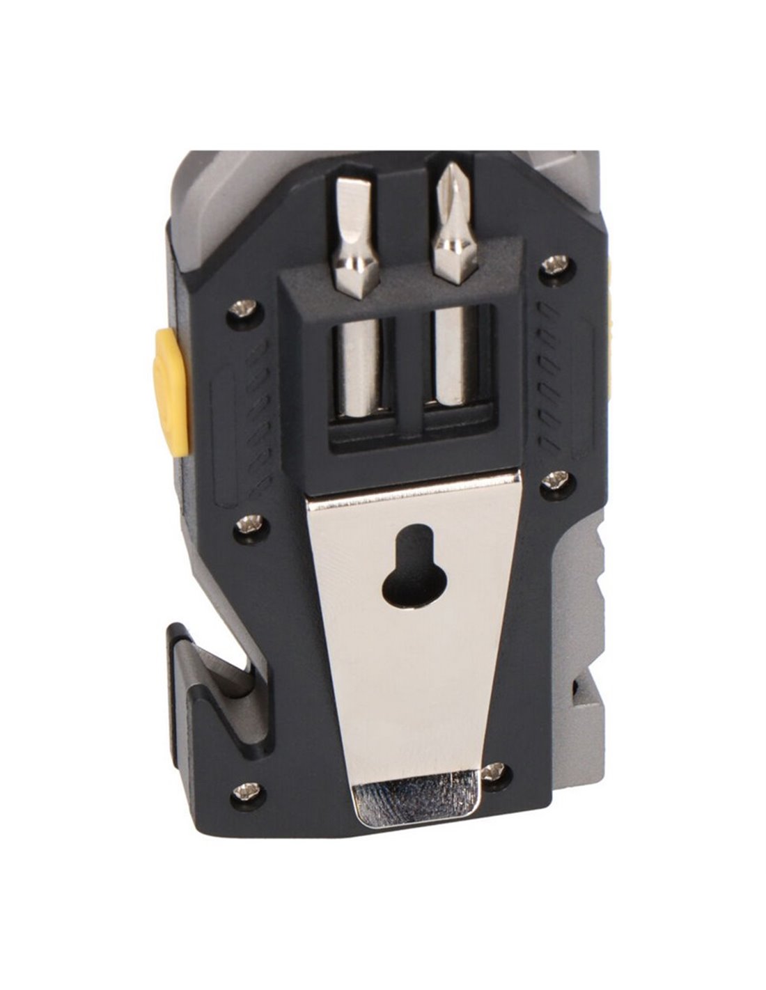 Wiederaufladbare LED-Lampe mit 3 Lichtmodi von 20 W, 2.000 Lumen und Sicherheitslampe 6 in 1: Clip, Flaschenöffner, Gurtschneider, Pfeife und Hammer. Integrierter Akku 3.600 mAh, USB-C Ladung, Powerbank-Funktion, 360° Kopf und Schutz IP44.