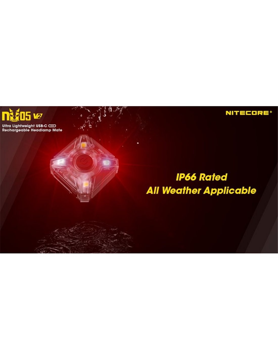 Signallicht NU05 V2, ultraleicht und über USB-C aufladbar. Bietet weißes und rotes Licht, 4 spezielle Modi und eine Autonomie von bis zu 47 Stunden. Kompakt und robust mit der Zertifizierung IP66, ideal für Aktivitäten im Freien und Camping.
