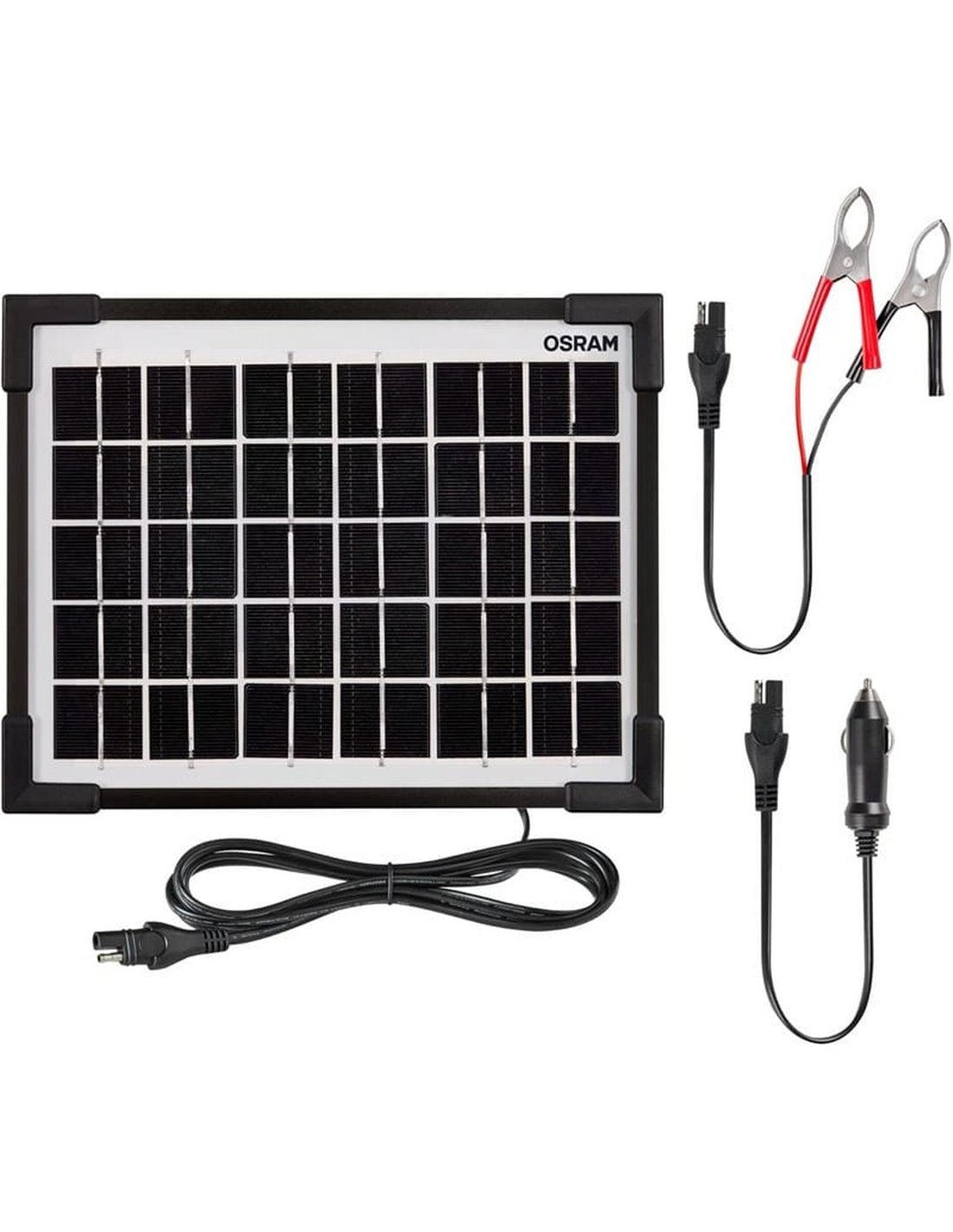 Es funktioniert sogar an bewölkten Tagen und beinhaltet Batterieklemmen und 12V DC-Stecker für eine schnelle Installation.