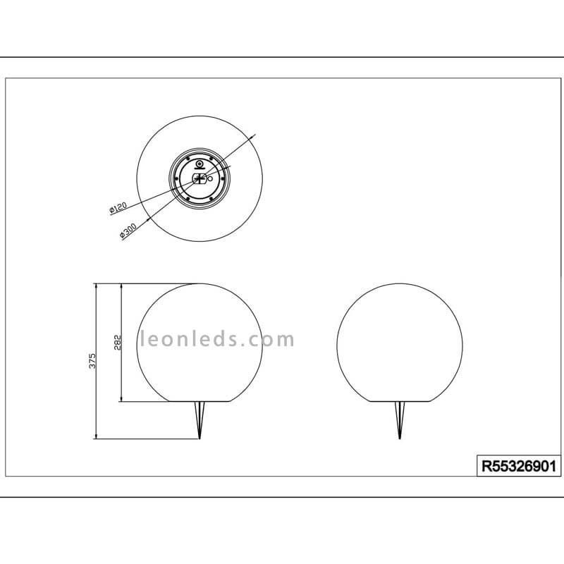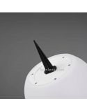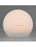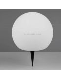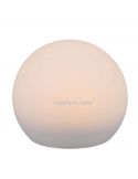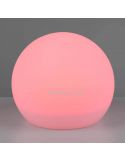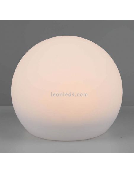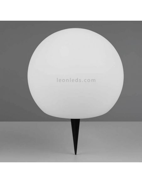 Solar RGBW LED Gartenkugel Melo von Trio Lighting. Sie verfügt über einen Lichtsensor, der das automatische Ein- und Ausschalten ermöglicht. Sie enthält einen wiederaufladbaren Akku, der durch Sonnenlicht aufgeladen wird, sowie einen Einschalter. Ihre RGBW-Technologie ermöglicht es, dass die Kugel die Lichtfarbe ändert, und kann über eine enthaltene Fernbedienung gesteuert werden. Sie hat eine Leistung von 5W, 30 Lumen und eine Lichtfarbe von 3.000K. Sie ist perfekt für den Einsatz im Außenbereich, dank ihrer Schutzart IP67.