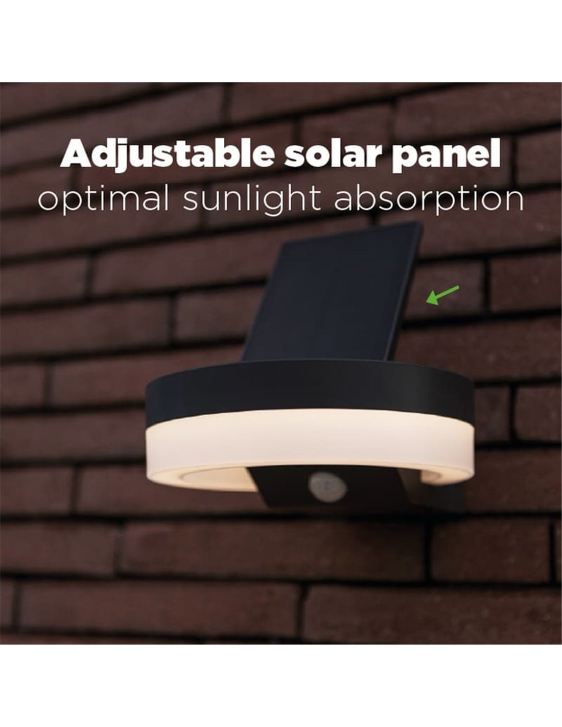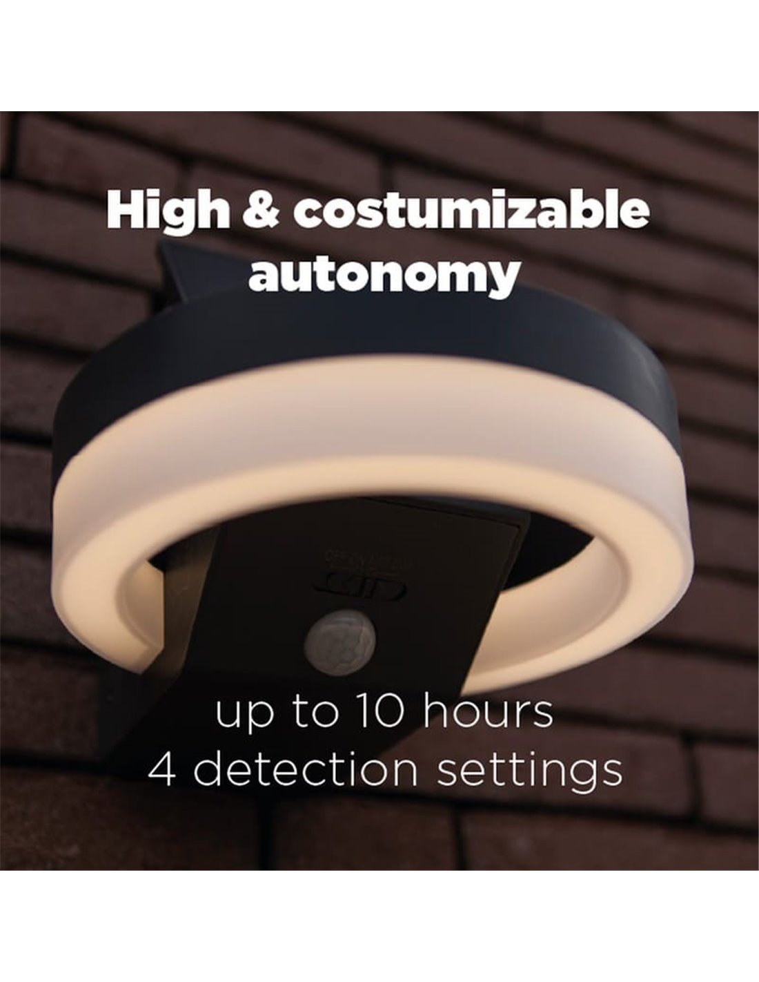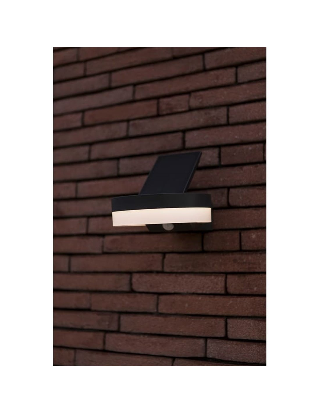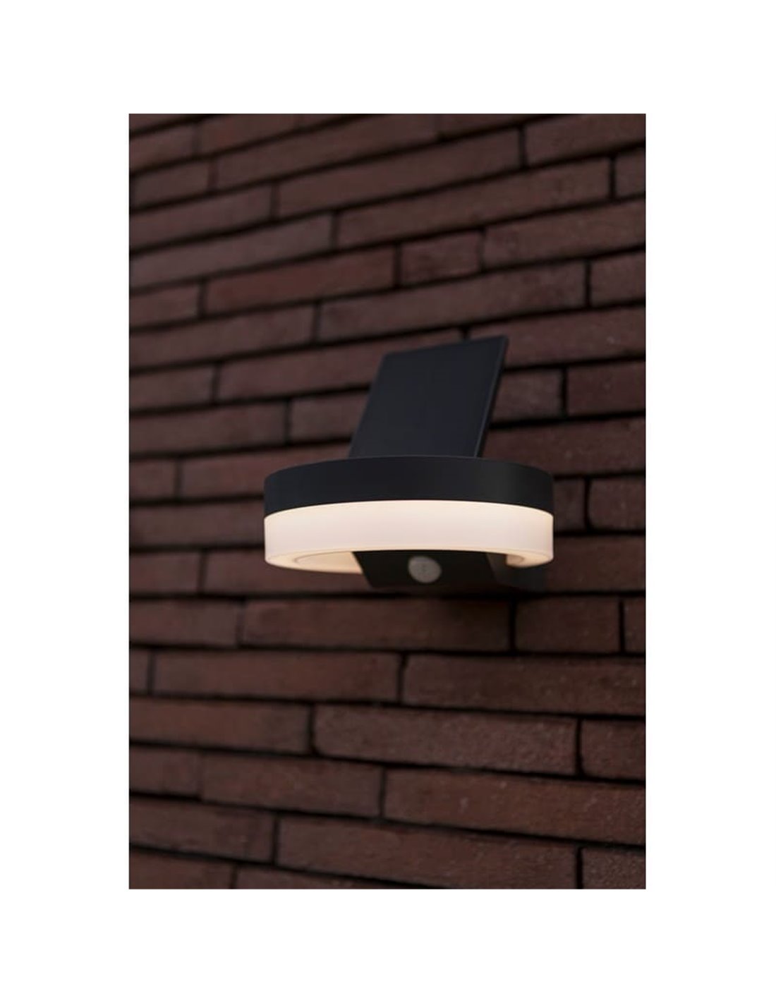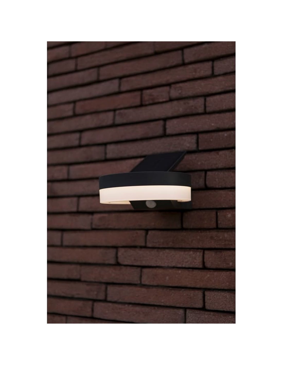 Die Solar LED-Wandleuchte RUNDA von Lutec kombiniert modernes Design mit fortschrittlicher Technologie, um eine effiziente und sichere Außenbeleuchtungslösung anzubieten. Ihre Ausführung in Dunkelgrau und ihre runde Form machen sie zu einer eleganten Wahl für Gärten, Wege und Eingänge.