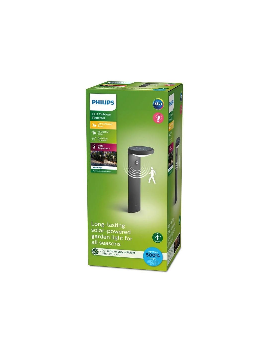 Die Solarlampe LED TYLA von Philips bietet warmes Licht 2700K und einen Bewegungs-sensor. Mit Ultra Efficient Solar liefert sie bis zu 40 Stunden Licht mit einer vollständigen Ladung. Wasserdicht mit IP44, without Verkabelung und einer Haltbarkeit von bis zu 50.000 Stunden.