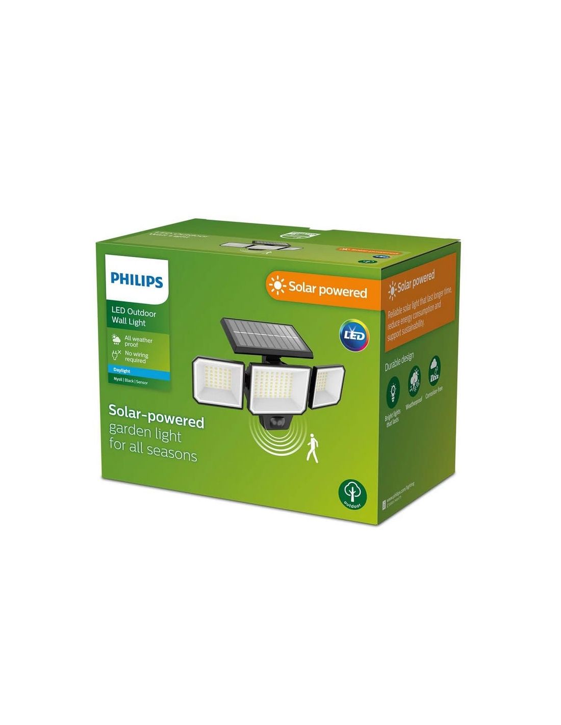 Der Solarprojektor Philips Nysil Security ist eine Lösung für Außenbeleuchtung, die Leistung, Effizienz und Nachhaltigkeit kombiniert. Entwickelt, um Sicherheit und Sichtbarkeit in Außenbereichen zu bieten, macht seine kabellose Installation ihn vielseitig und einfach in jedem Bereich zu platzieren.