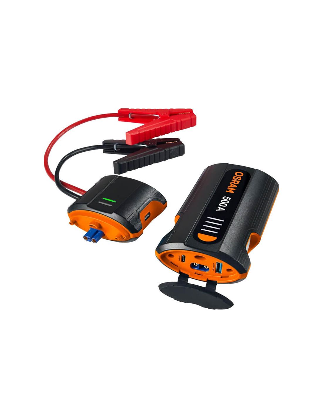 Der OSRAM BATTERYjumpstart 500 ist eine kompakte und leistungsstarke Starthilfe, mit Boost-Funktion für völlig entladene Batterien, geeignet für Benzinmotoren bis 3L und Dieselmotoren bis 1,5L. Enthält USB-C-Anschluss, Powerbank-USB und integrierte LED-Lampe.
