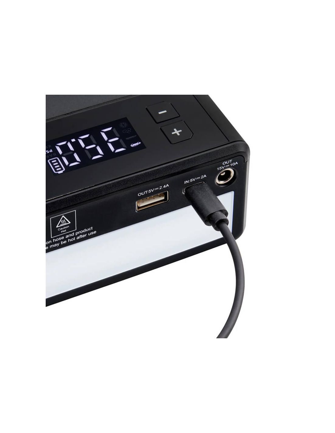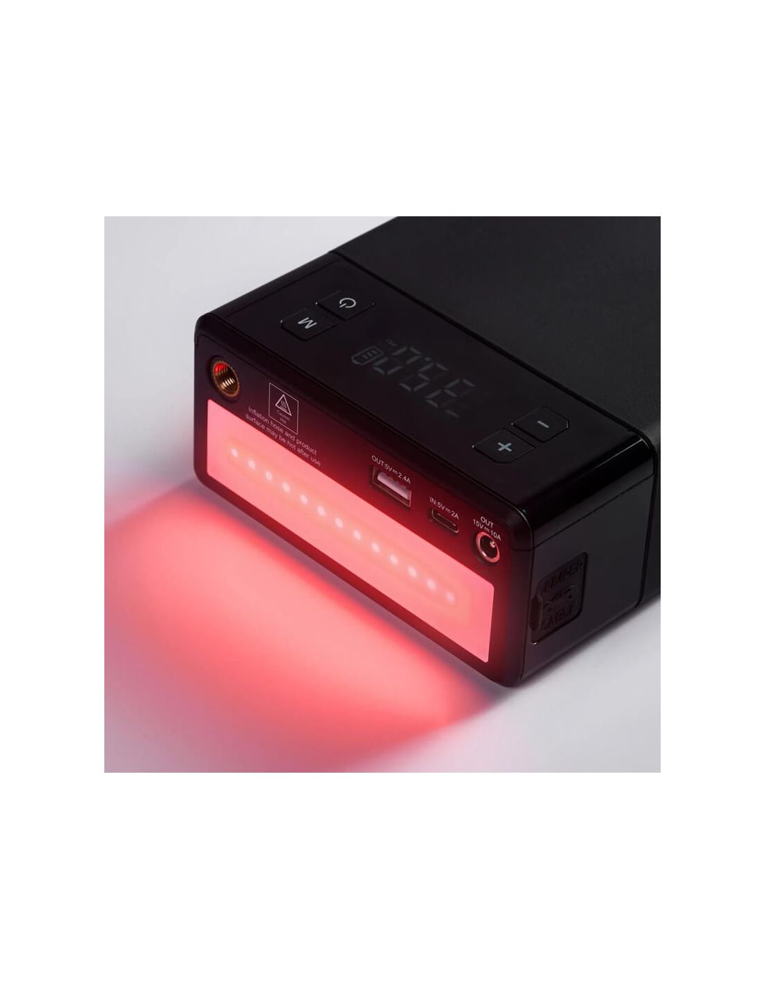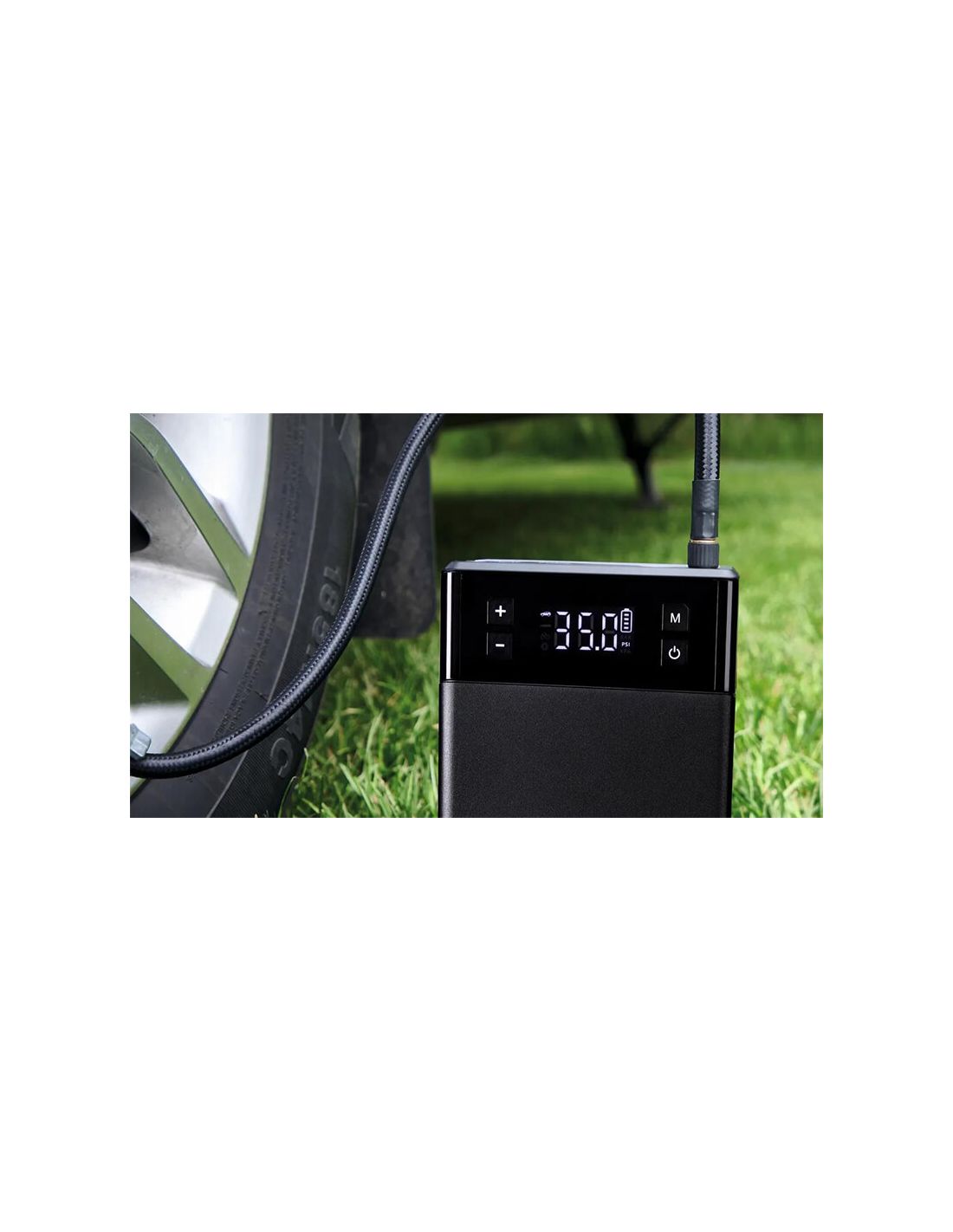 ✔ Integrierter Reifenkompressor mit digitalem Manometer und automatischer Abschaltfunktion.