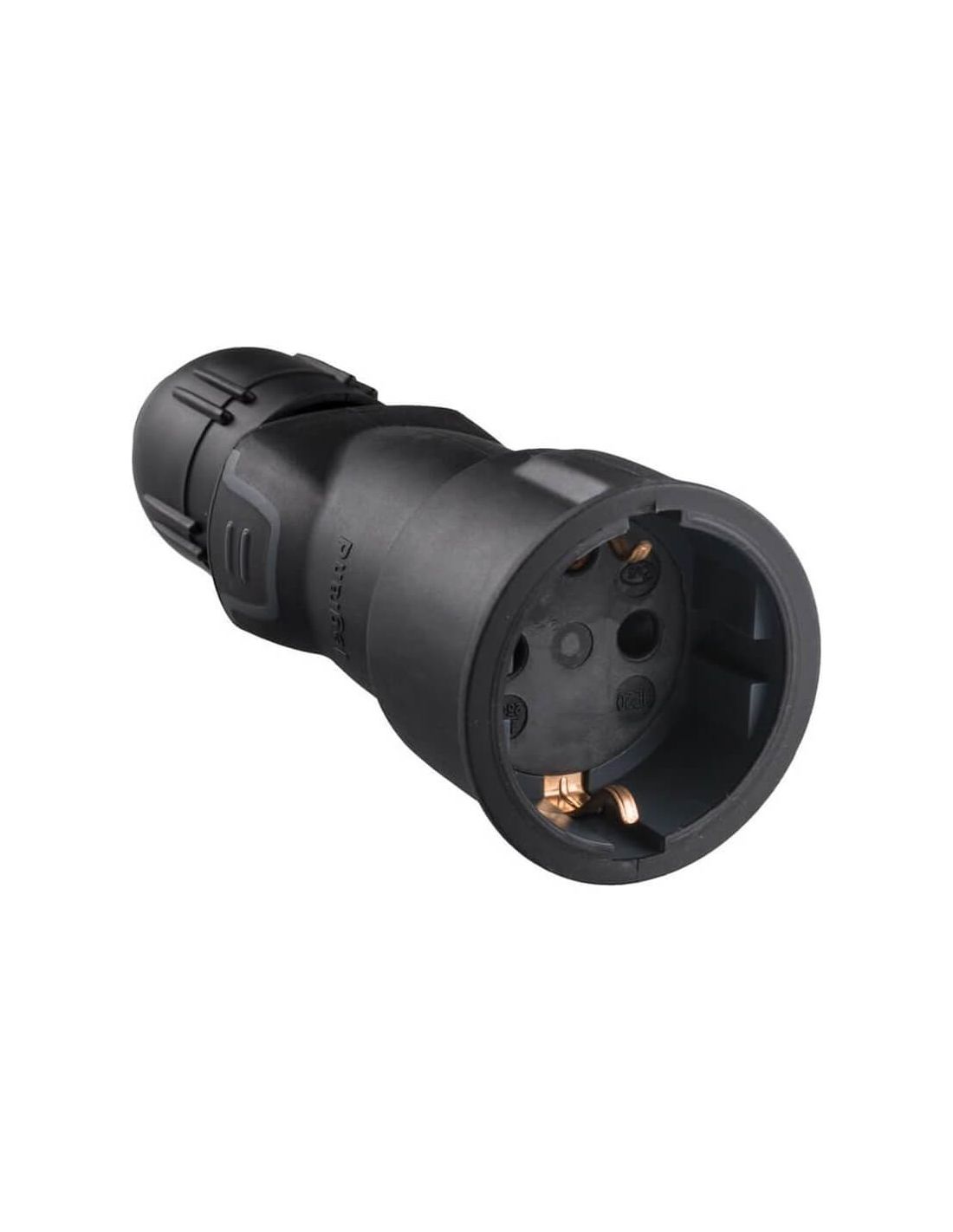Die 2P+T 16A IP44 Steckdose aus Gummi mit Kabeldurchführung ist eine robuste, sichere Lösung für die Arbeit unter anspruchsvollen Bedingungen. Hergestellt aus hochbeständigem schwarzem Gummi, ist sie dafür konzipiert, eine lange Haltbarkeit auch in industriellen und bauwesen Anwendung zu gewährleisten. Ihr Schutzdeckel für die Anschlusspole und die integrierte Erdung sorgen für eine sichere und zuverlässige Nutzung.