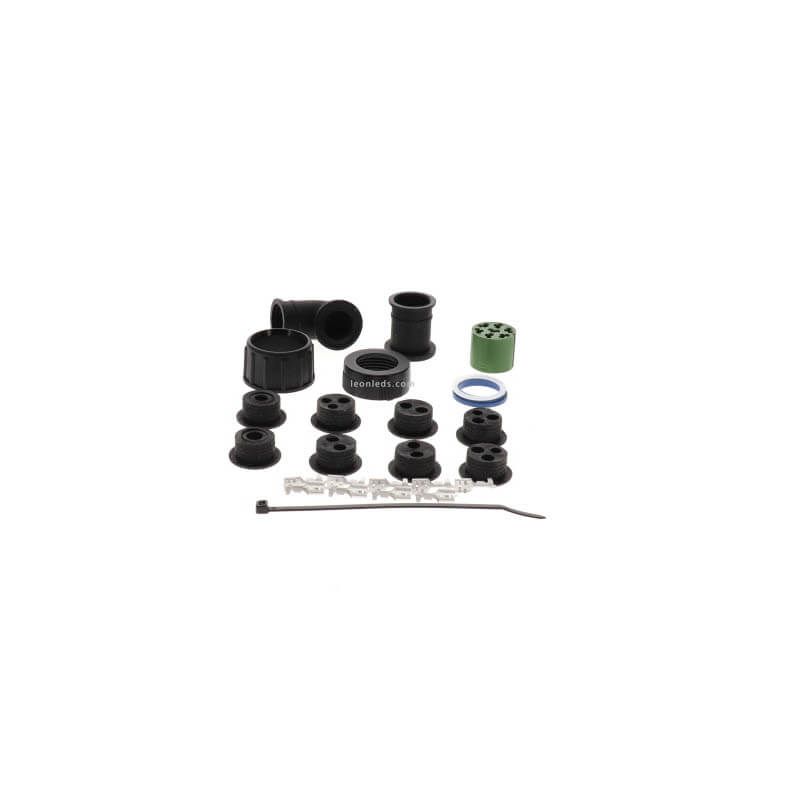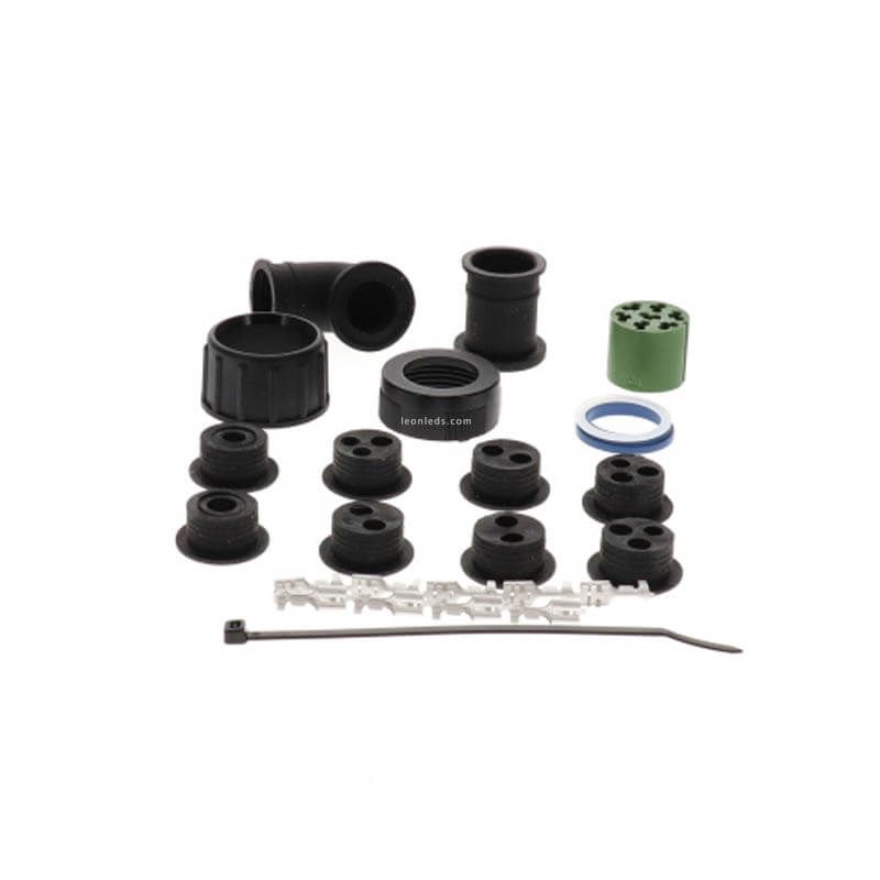 Grüner weiblicher Stecker ASS2 7 Polig, enthält alles, was für die Installation dieses Steckers erforderlich ist, einschließlich der Verriegelung, der Faston, der Gummidichtungen und des Steckers, wie auf dem Foto zu sehen. Original ASS2 7-Pin-Stecker von Aspock mit Flach-Faston, Herkunftsreferenz Aspock 13-5626-951.