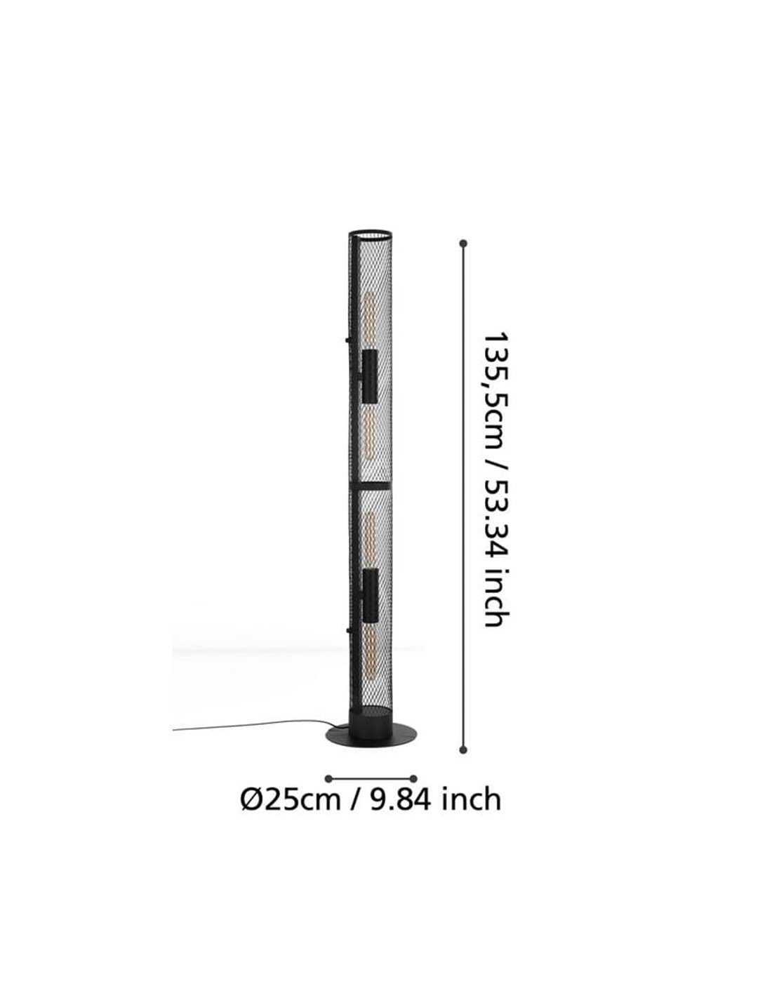 Stehlampe REDCLIFFE von Eglo, mit langem Zylinder aus schwarz expandiertem Metall. Kompatibel mit langen E27-Glühbirnen (nicht enthalten). Verleiht jedem Raum einen modernen und industriellen Akzent.