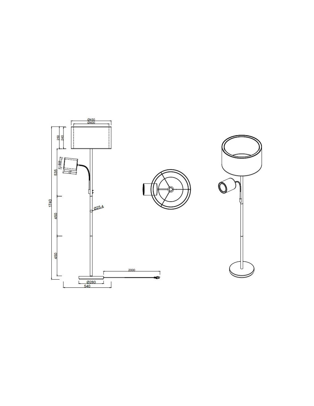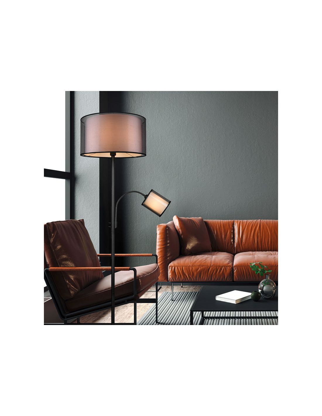 Die Stehlampe Burton mit zwei Lichtern bietet separate Schalter, um die Lichter unabhängig zu steuern, und benötigt für Ihre Funktion zwei Glühlampen: eine E27 mit maximal 60W und eine E14 mit 40W, nicht im Lieferumfang enthalten.