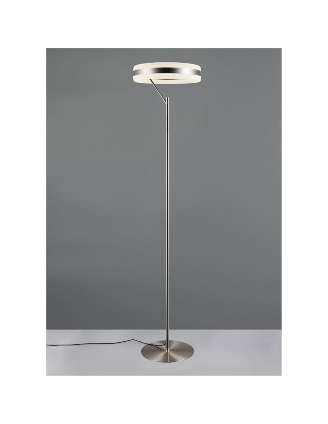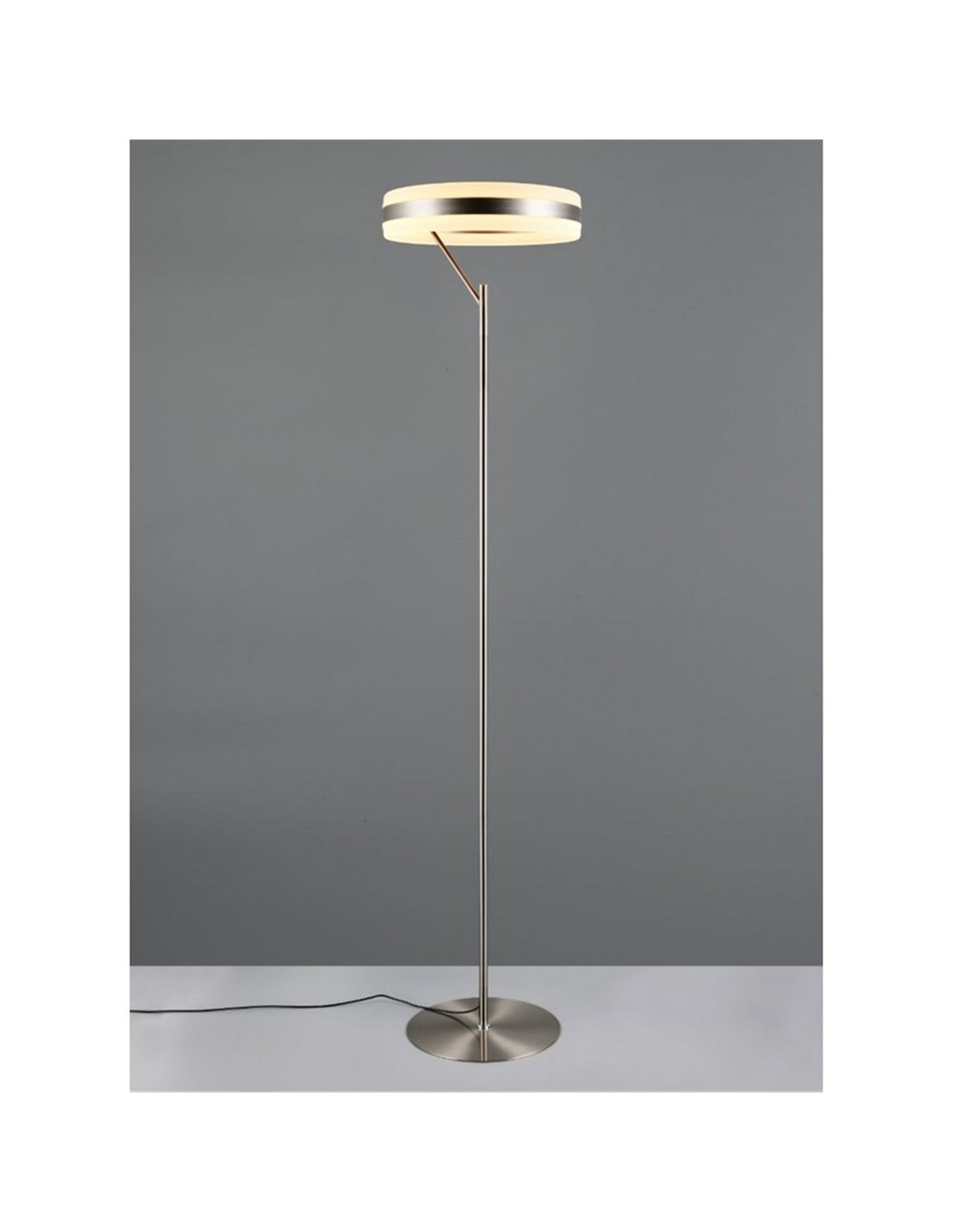 Die Stehlampe LED DIOS bietet ein modernes und funktionales Design mit mattem Nickel-Finish. Mit einer Höhe von 180 cm sorgt sie für gleichmäßige und starke Beleuchtung dank ihrer 21W Leistung und 2500 Lumen, ideal für Wohnzimmer, Esszimmer oder Schlafzimmer.