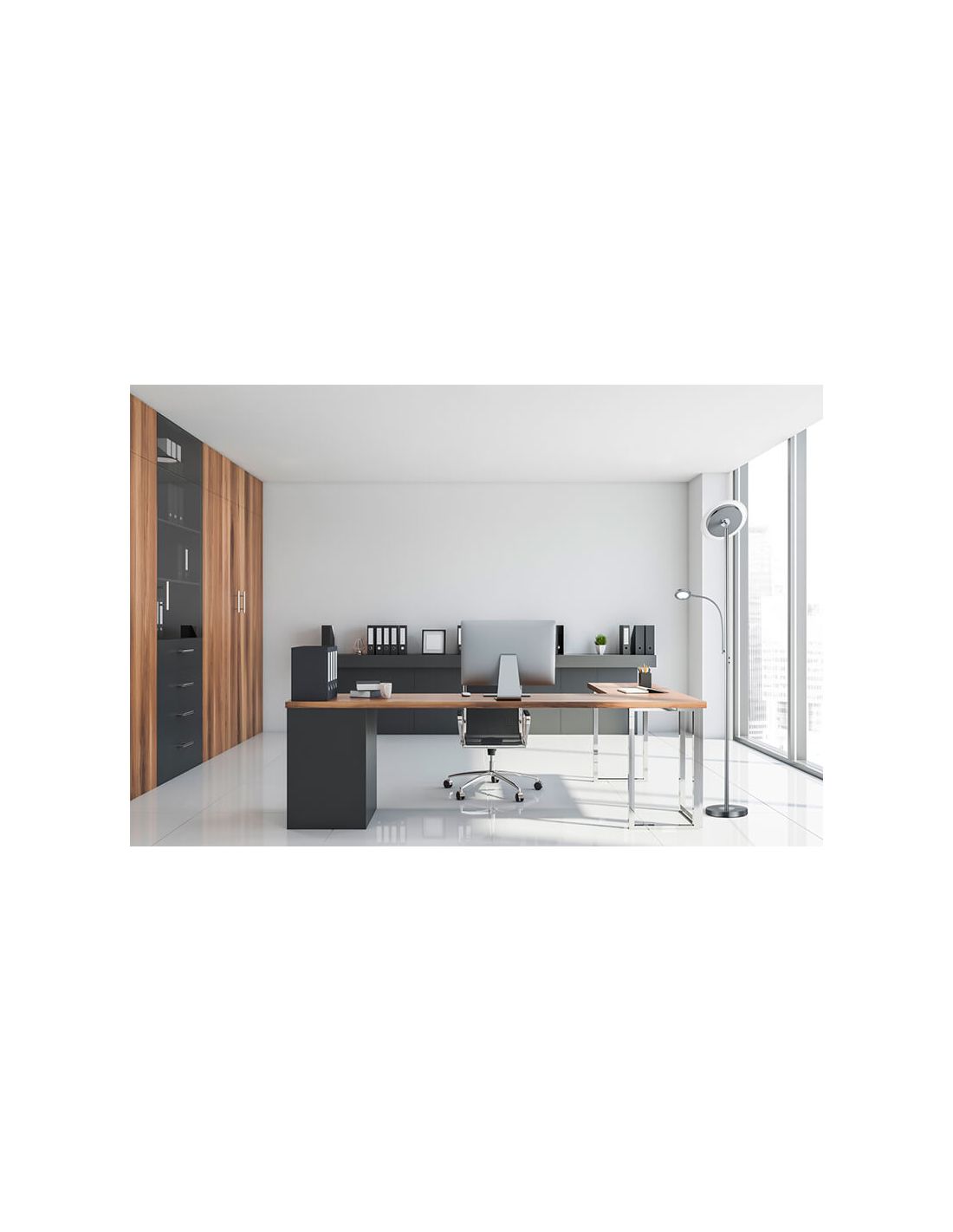 Mit dieser LED-Stehlampe Ackbar können wir verschiedene Atmosphären schaffen, dank der Regelung des Tonalität und der Intensität und dank des drehbaren Hauptlichts können wir indirektes Licht erzeugen, das die Sicht nicht stört; etwas sehr Nützliches, wenn wir keine Blendung oder Reflexionen auf dem Fernseher oder im restlichen Wohnzimmer wollen.