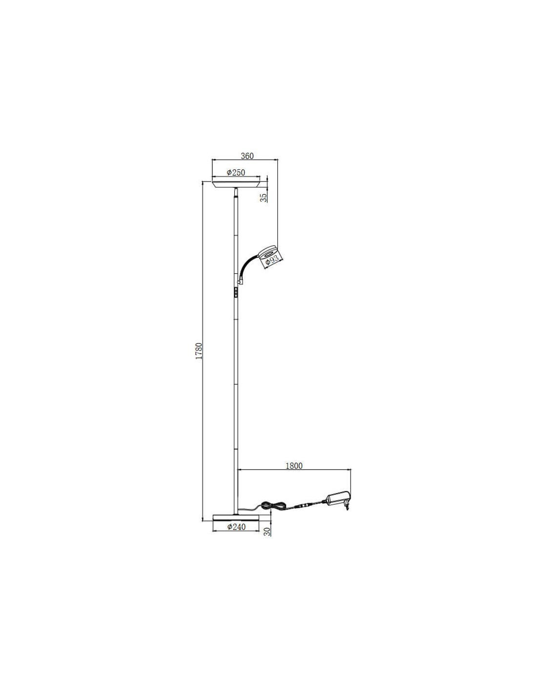 Stehlampe LED SPECTER in matt schwarz, mit regulierbarem Licht und flexiblem Arm. Minimalistisches und modernes Design, ideal für jeden Raum. Sparen Sie Energie und genießen Sie eine anpassbare Beleuchtung. Die Lichtstärke der oberen Lampe beträgt 17W und 1.900Lm, bei Licht des flexiblen Arms beträgt die Leistung 4,5W und die Lichtintensität 450Lm, bei beiden ist der Lichtton regulierbar, 2700K + 4000K + 6500K.