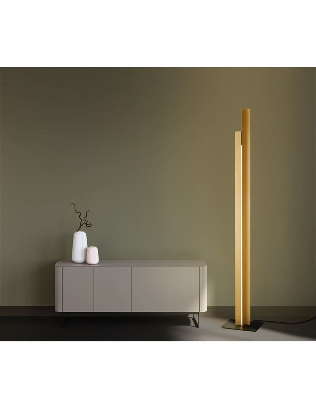 Wählen Sie die Stehlampe LED MANHATTAN messing und bringen Sie Stil, Wärme und Effizienz in Ihr Zuhause mit zeitgenössischem und funktionalem Design.