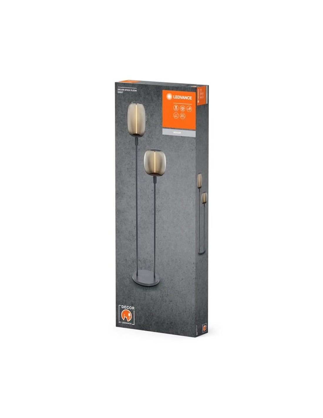 Die Stehlampe STICK FLOOR von LEDVANCE zeichnet sich durch ihr modernes und funktionales Design aus. Ausgestattet mit zwei geraden Stangen für 2 dekorative E27-Glühbirnen (nicht im Lieferumfang enthalten), bietet sie eine elegante und vielseitige Beleuchtung.