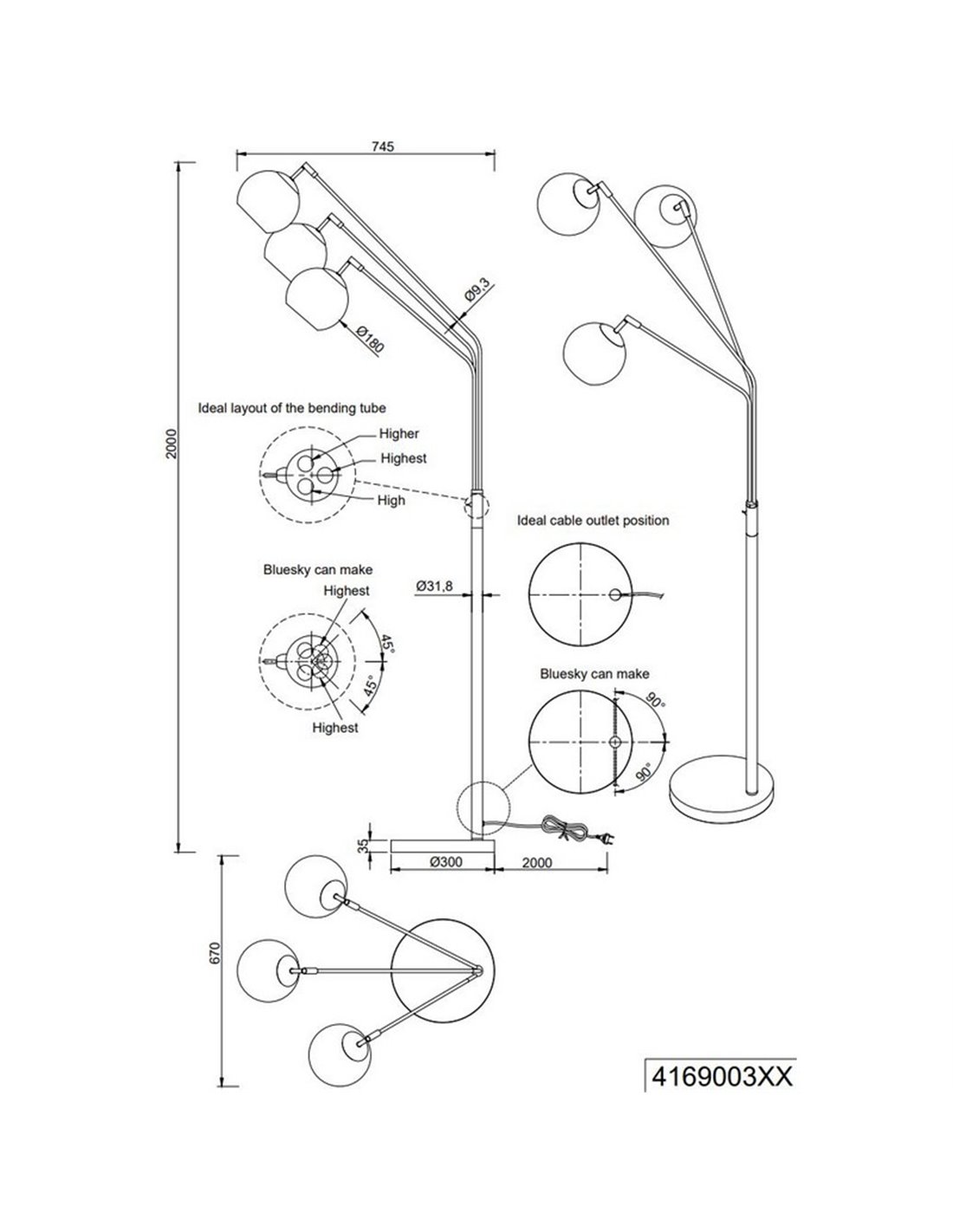 Die Stehlampe PAXTON bietet ein elegantes Design mit drei Abdeckungen aus Glas, die eine anspruchsvolle Beleuchtung schaffen. Mit einer Höhe von 200 cm und einem integrierten Schalter ist sie ideal, um Wohnzimmer und große Räume zu beleuchten. Kompatibel mit 3 E27-Leuchtmitteln von bis zu 10W (nicht enthalten). Zertifizierung IP20, nur für den Innenbereich geeignet.