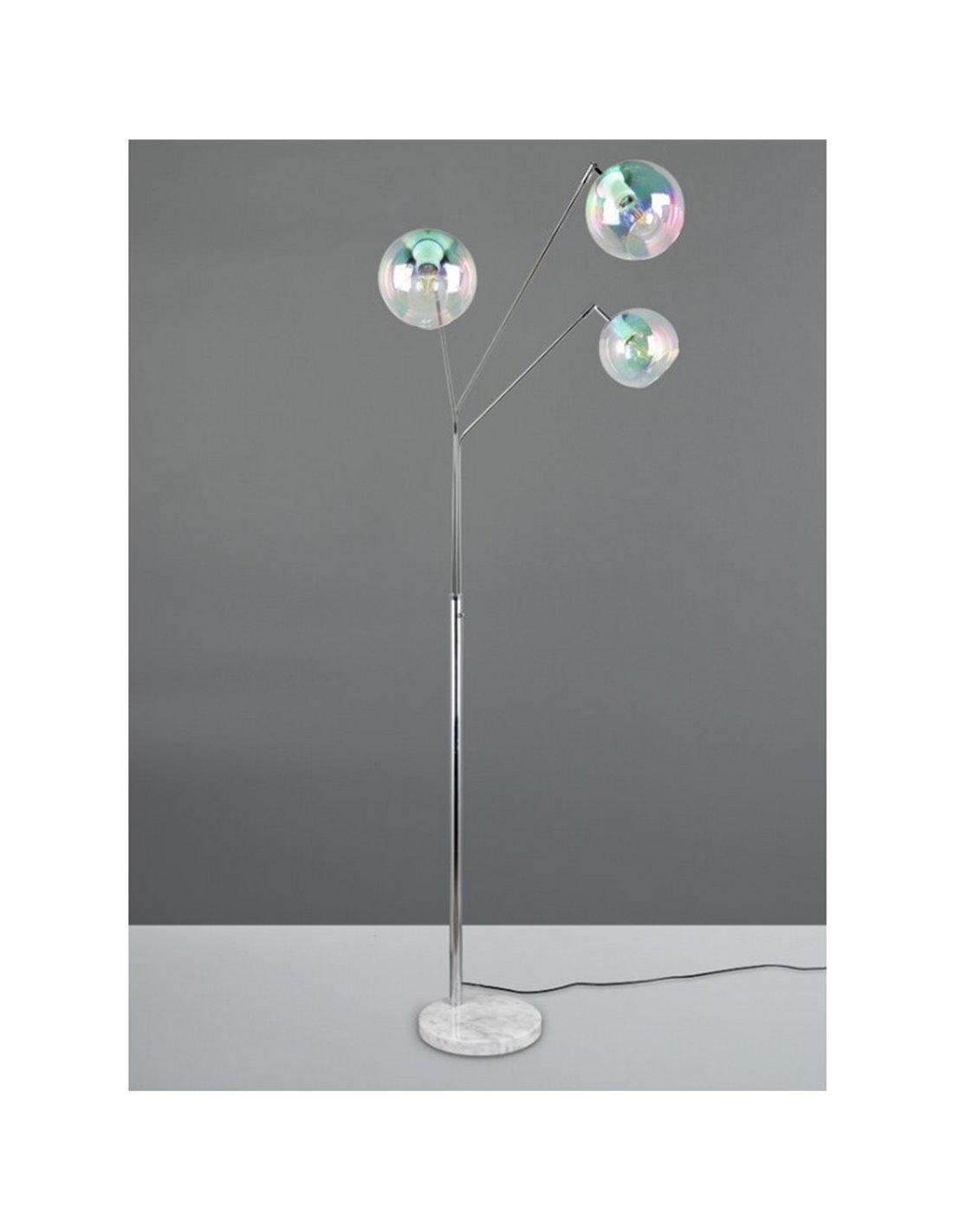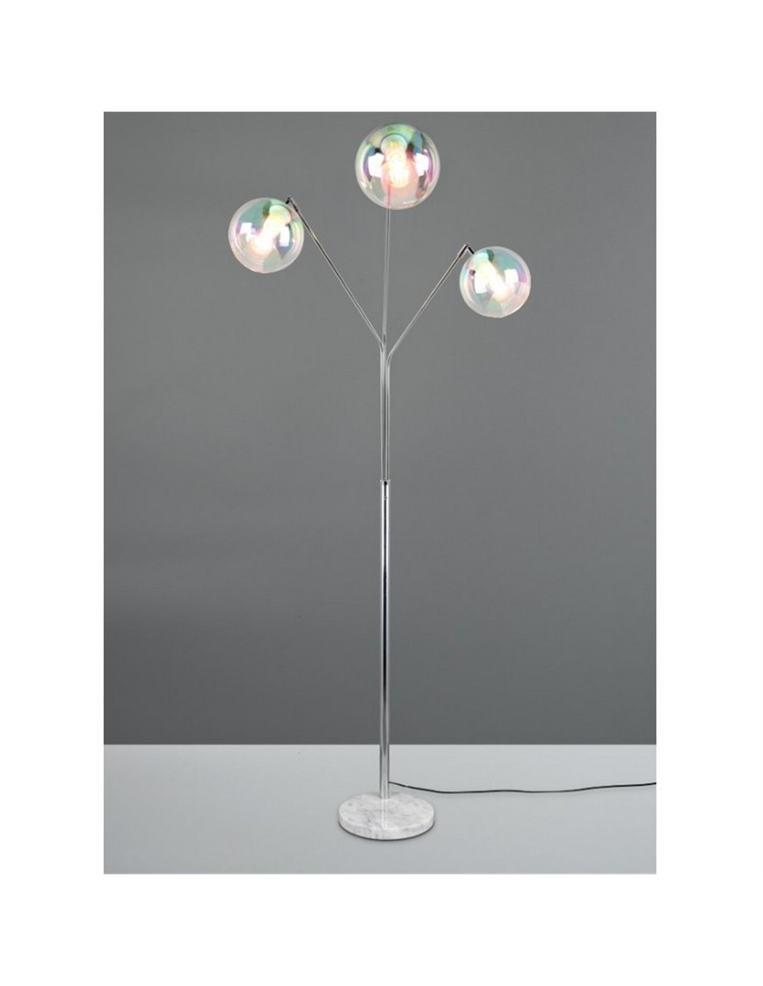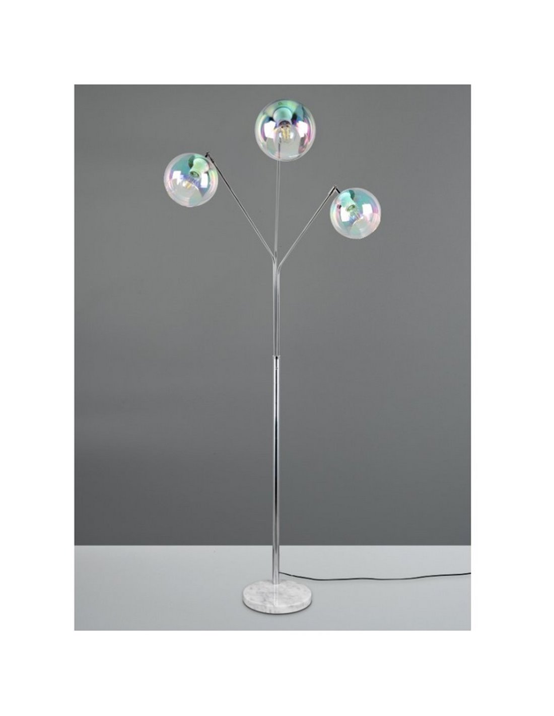 Stehlampe PAXTON mit 3 Abdeckungen aus irideszentem Glas, integrierter Schalter, ohne Leuchtmittel, 3x E27 max. 10W IP20