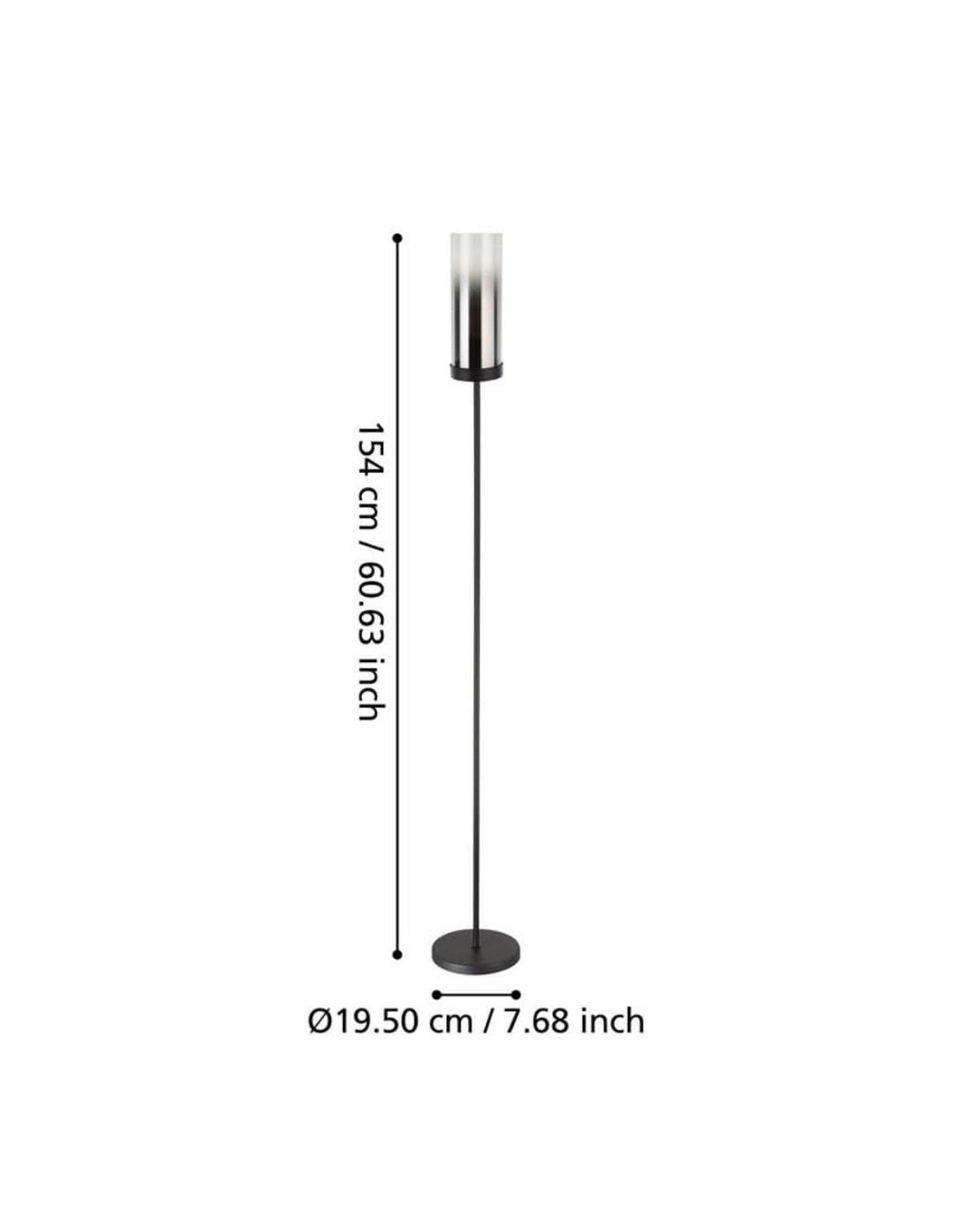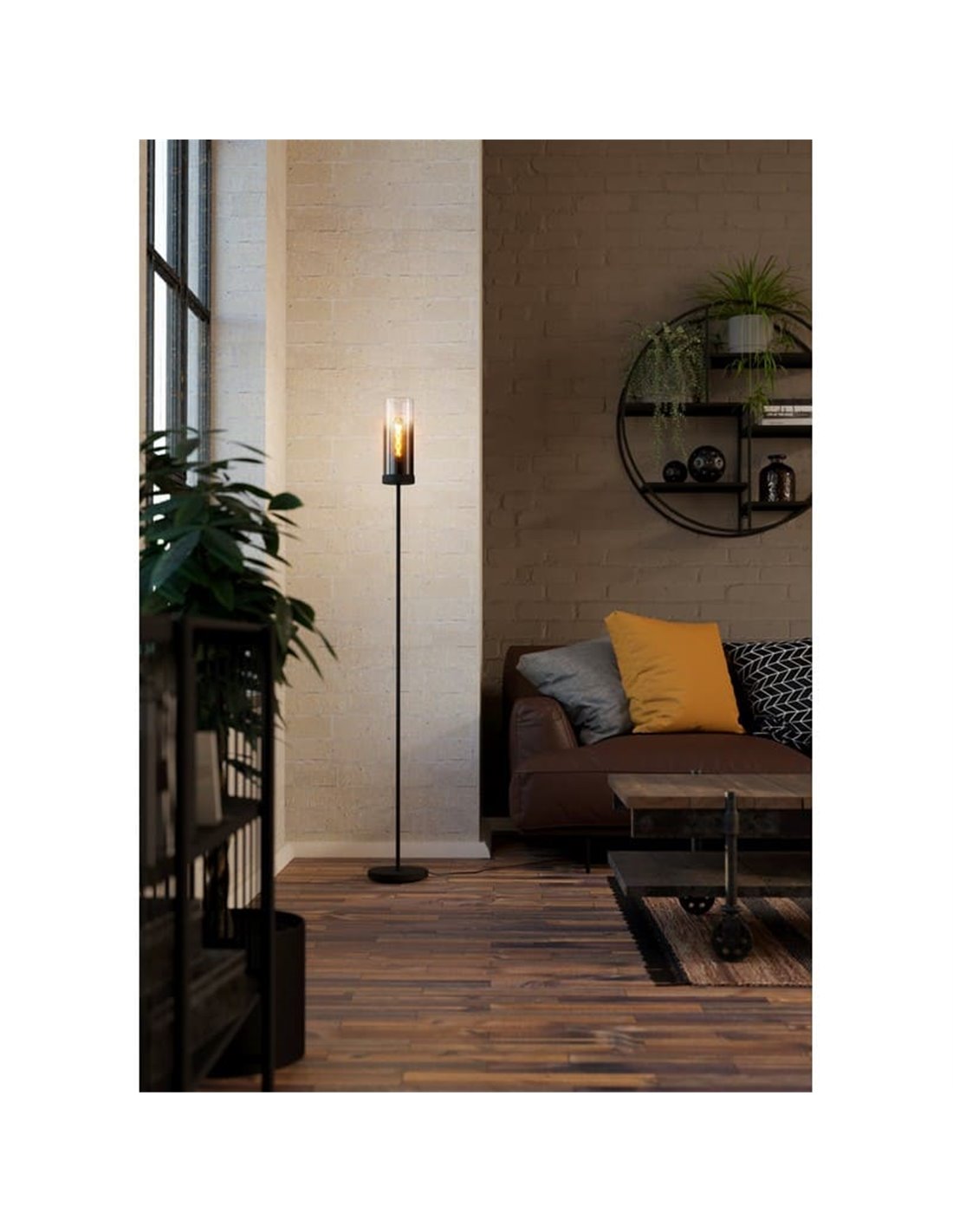 Stehlampe TOOTHILL von Eglo in schwarz mit transparentem, vergloßtem Glas, kompatibel mit E27-Glühbirne (nicht enthalten). Modernes Design für jede Ecke.