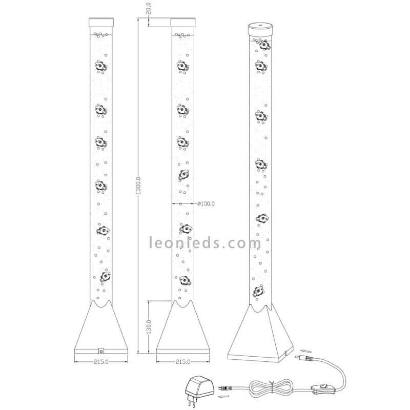 Es benötigt keine Glühbirne, da es integrierte SMD-LEDs hat. Empfohlene Installation im Innenbereich (Schutz IP20). Wir müssen nur die Lampe mit Wasser füllen und sie betätigen, um ihre verschiedenen Farben und die Bewegung der Kunststofffische im Inneren zu genießen.