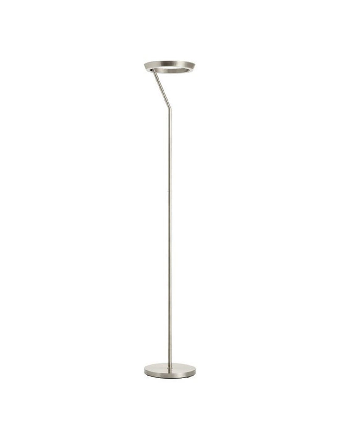 Die Stehlampe SATURN S matt-chrom von MDC ist ein Designerstück, das darauf abzielt, Umweltlicht und einen Hauch von Eleganz ins Wohnzimmer zu bringen. Ihre schlanke Struktur endet in einem kreisförmigen Lichtkranz von 40W, der 4800Lm liefert und den Strahl sowohl nach oben als auch nach unten richtet, sodass ein sanftes indirektes Licht erzeugt wird, das den Raum umhüllt, ohne zu blenden.