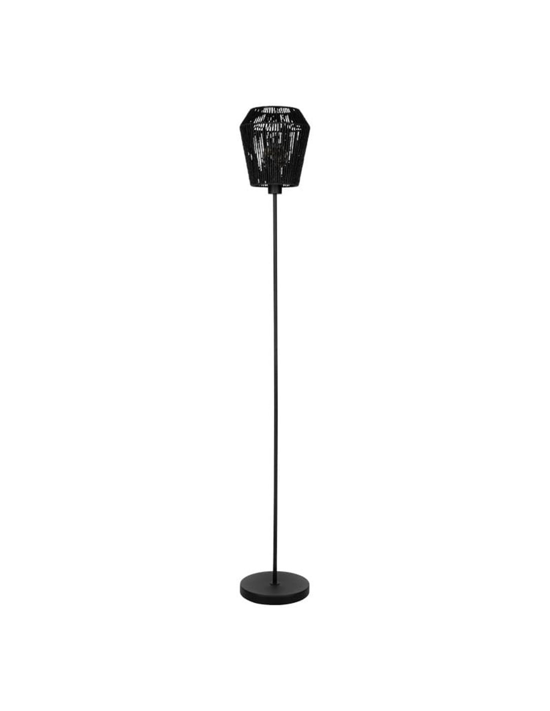 Stehlampe PERSLEY von Eglo mit schwarzer Struktur und schwarzem Papierschirm, kompatibel mit E27-Glühbirne (nicht enthalten). Fügt jedem Raum einen eleganten und modernen Akzent hinzu.