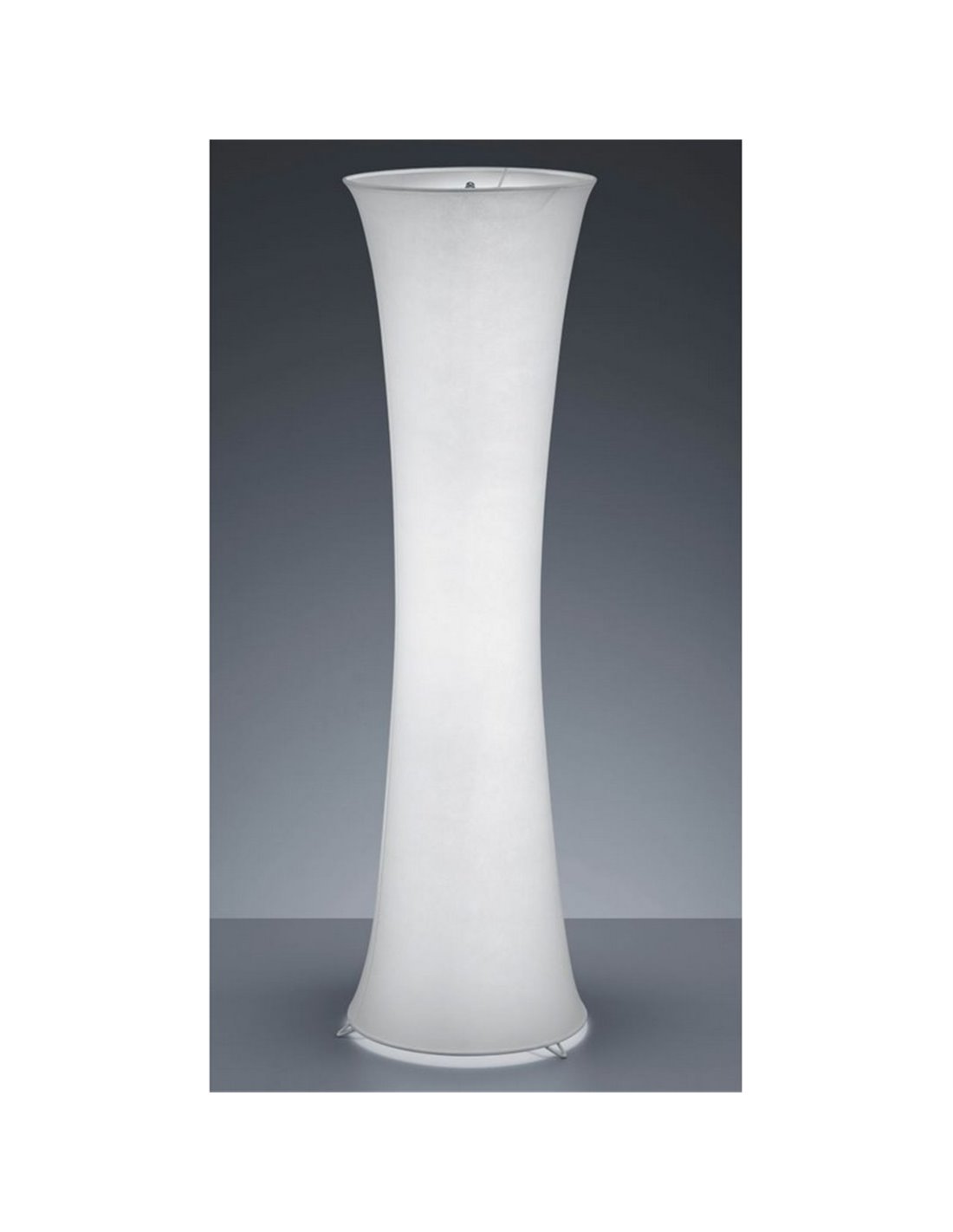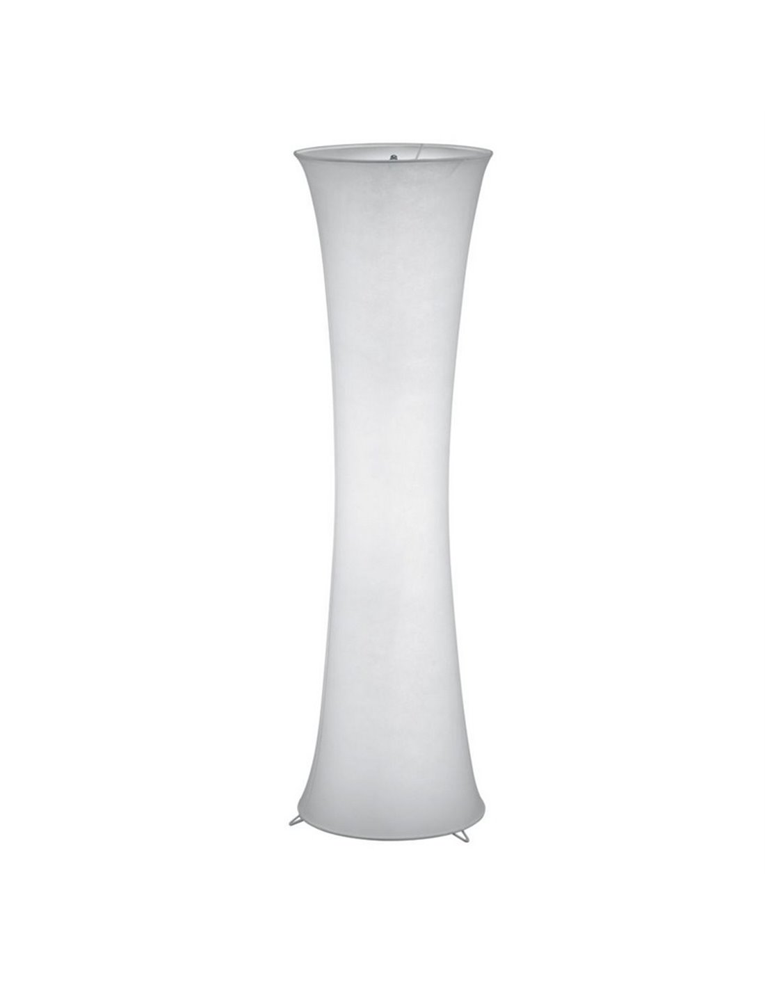 Stehlampe GRAVIS mit weißem Stoffschirm und Metallstruktur. Funktioniert mit 2 E27 Glühbirnen max. 40W (nicht enthalten). Abmessungen: ↕ 123 cm | Ø 35 cm. Inklusive Fußschalter. Schutzart IP20.
