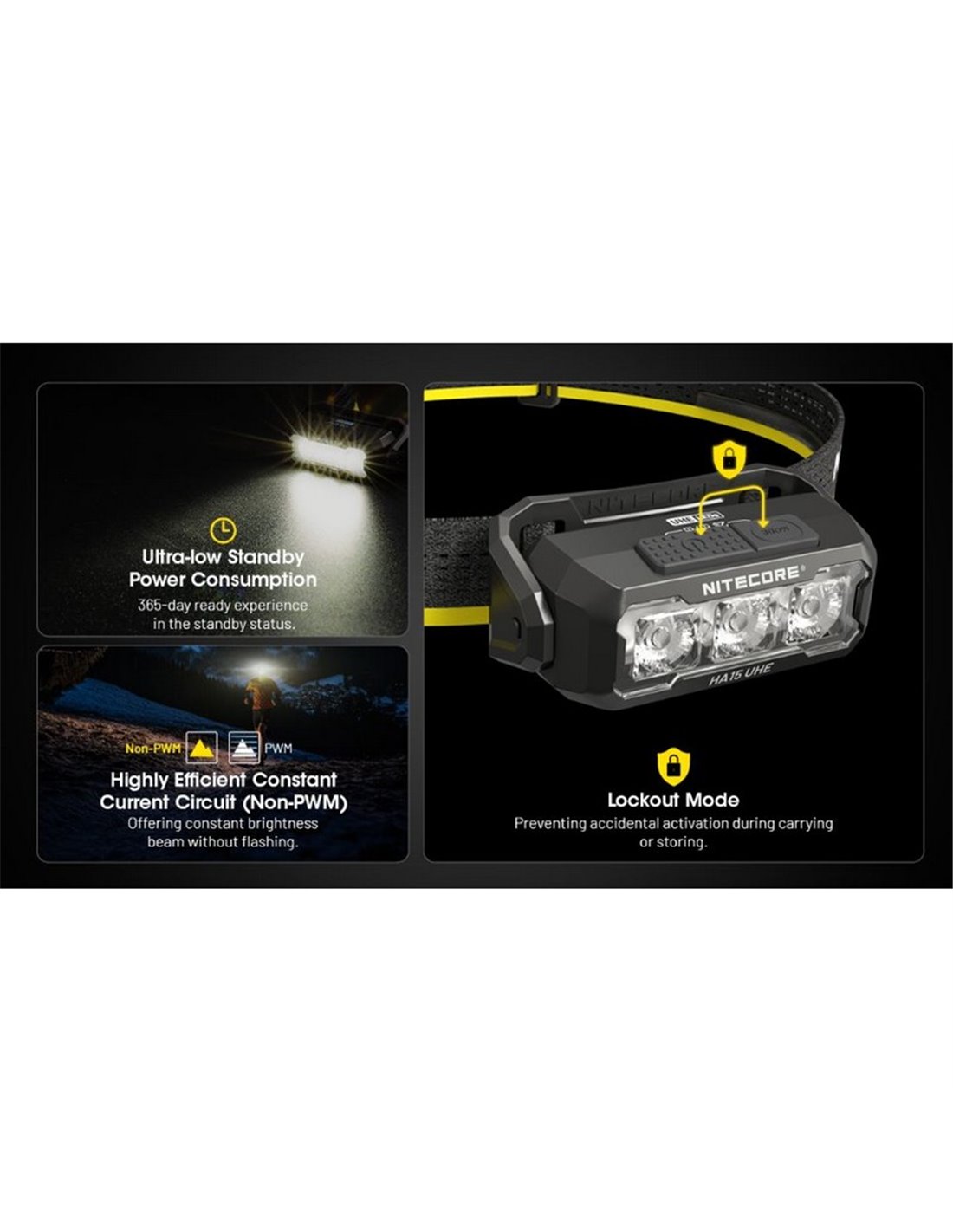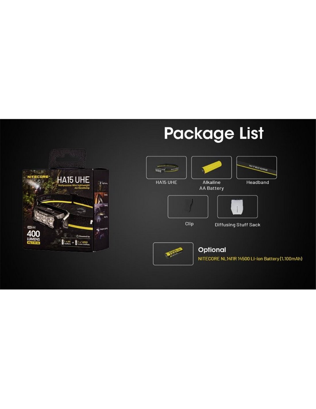 Die HA15 Stirnlampe von NITECORE vereint Leistung und Leichtigkeit und bietet eine perfekte Lösung für Outdoor-Aktivitäten, Wandern und nächtliches Laufen. Mit einem hybriden Design und einer Autonomie von bis zu 114 Stunden ist sie ideal für diejenigen, die Komfort und Funktionalität in jeder Umgebung suchen.