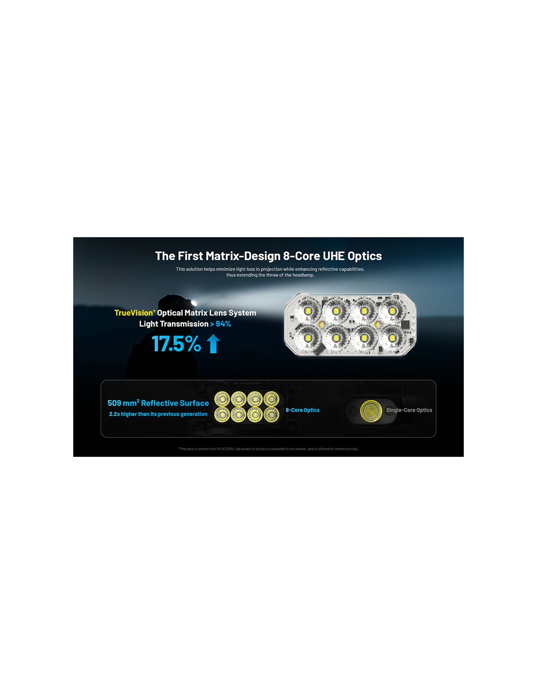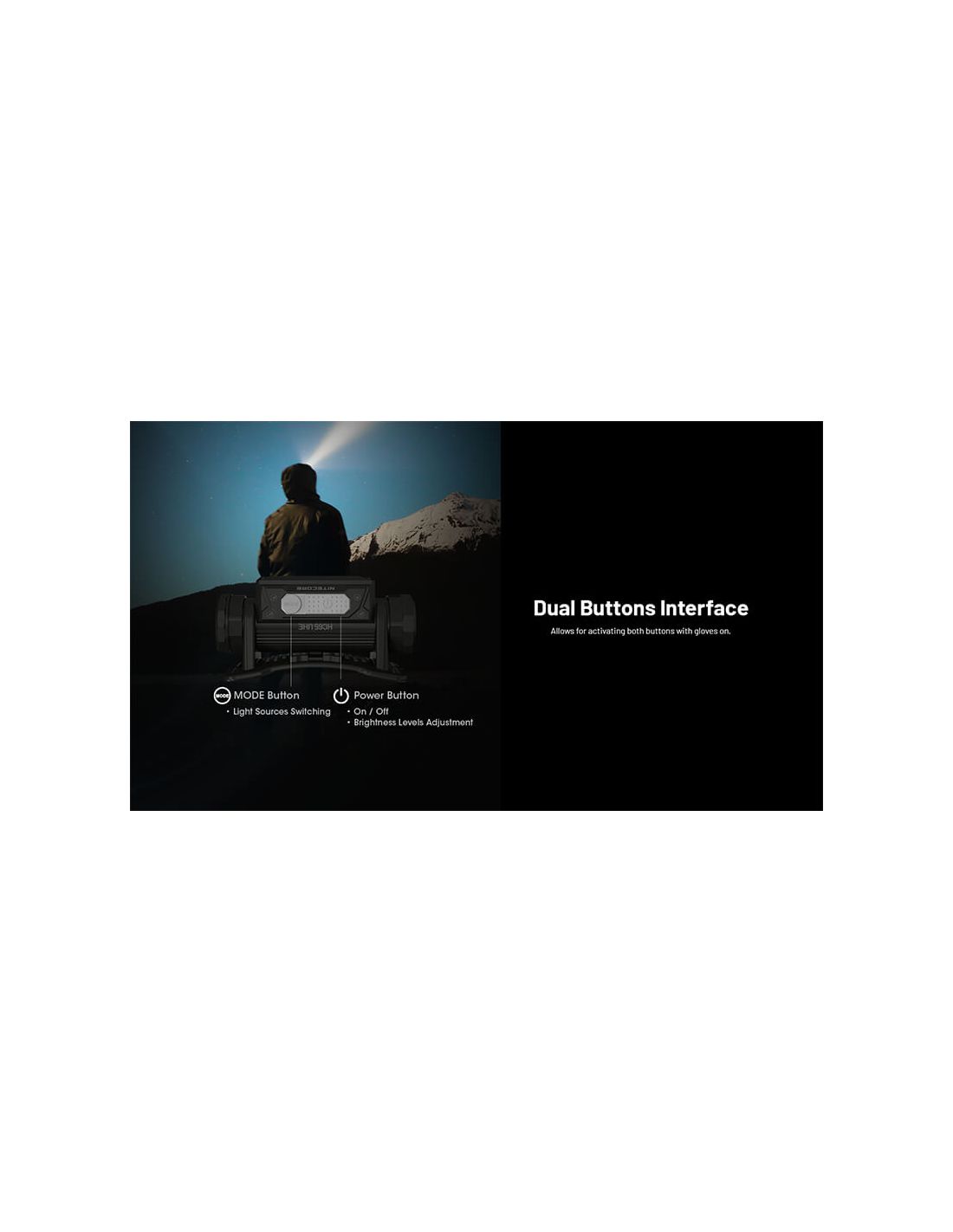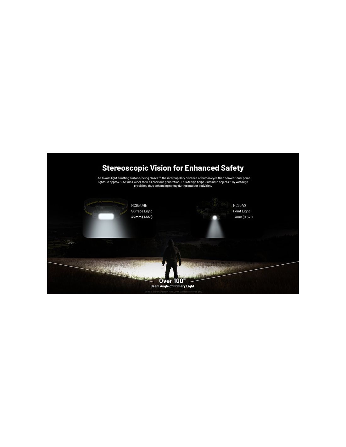 Die LED-Lampe Nitecore HC65 UHE verfügt über ein verstellbares Textilband sowohl am oberen Teil des Kopfes als auch um den gesamten Umfang. Der Griff ist perfekt und die Lampe kann problemlos nach oben und unten bewegt werden. Sie ist leicht, mit nur 152 Gramm inklusive Batterie.