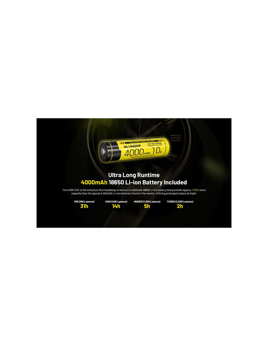 Enthält eine 18650-Batterie mit 4.000mAh, die stärkste des Herstellers.