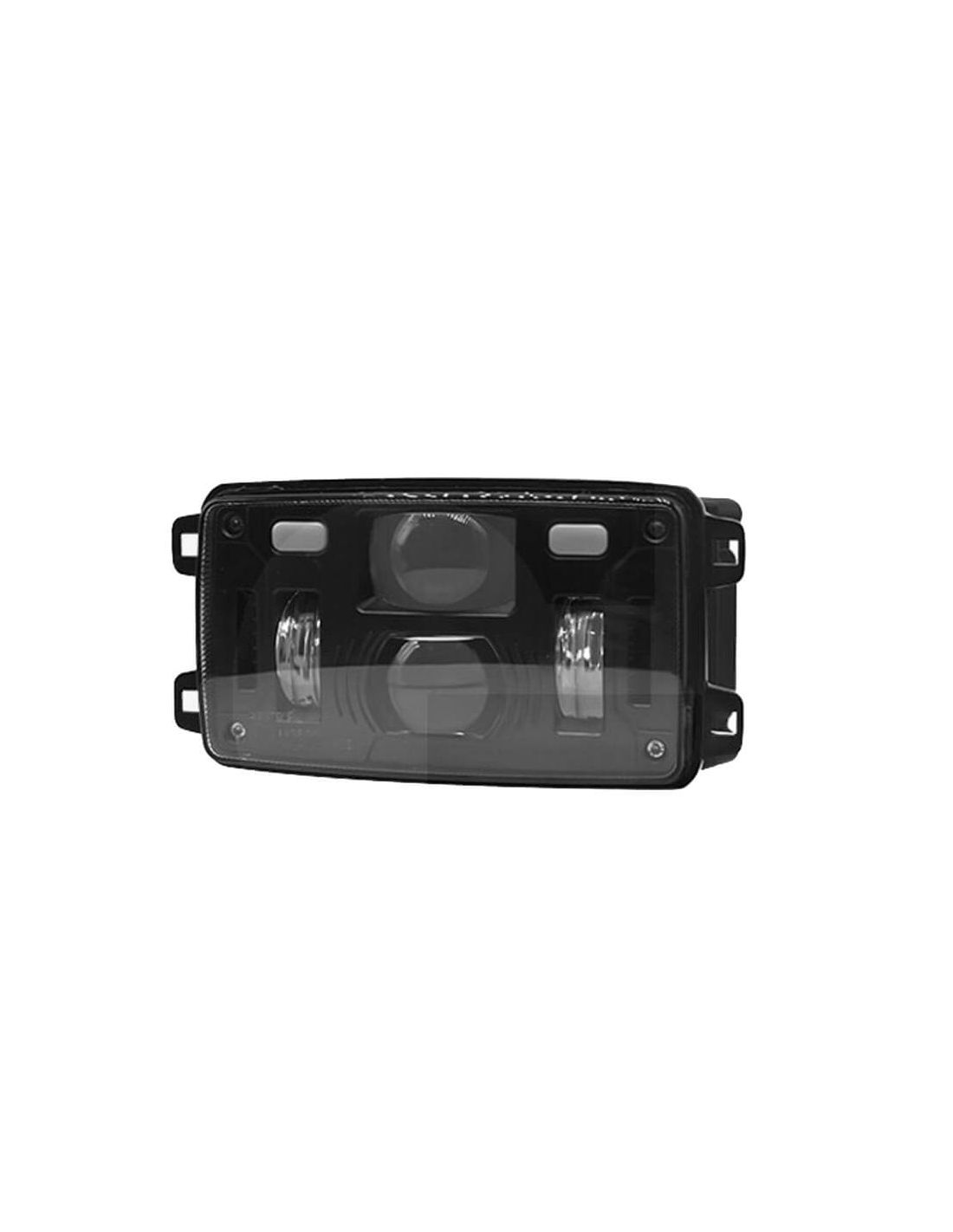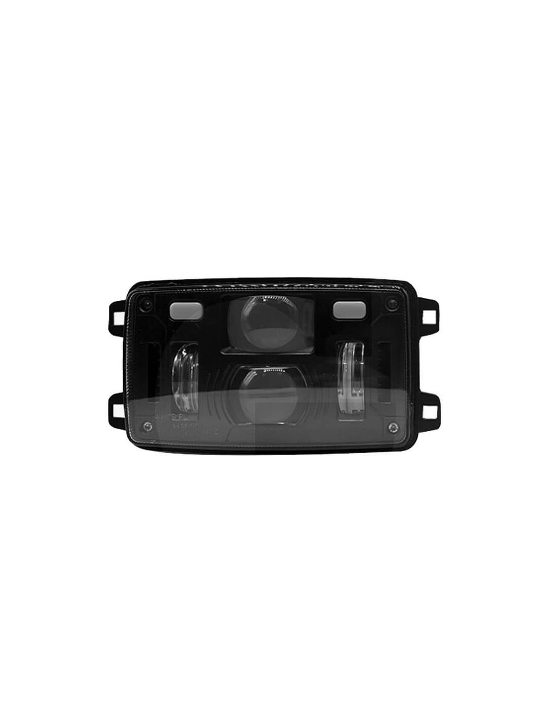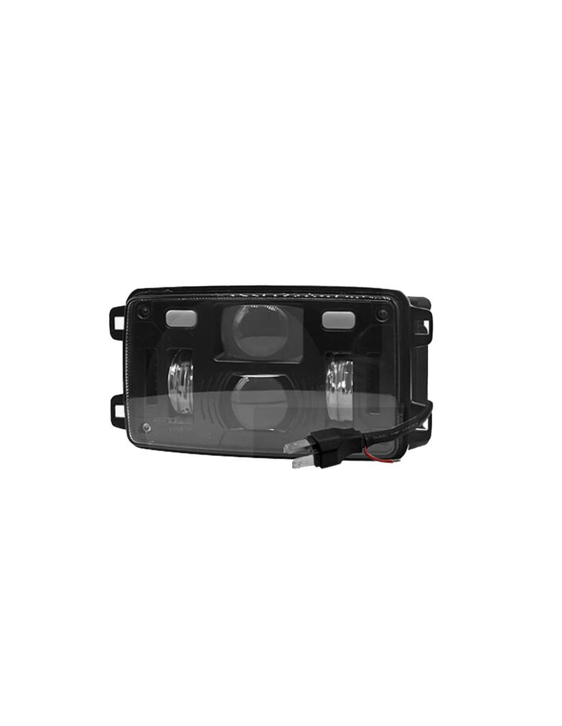 Genehmigter LED-Scheinwerfer schwarz mit H4-Anschluss. Größe: 155x92x82 mm. Leistungsstarke Beleuchtung mit 9 LEDs und Schutzart IP69K. Kompatibel mit 12V/24V, ECE-, CE-, DOT- und SAE-Zulassungen. 2 Jahre Garantie. Abblend-, Fern- und Positionslicht LED, gültig für Straßenlicht.