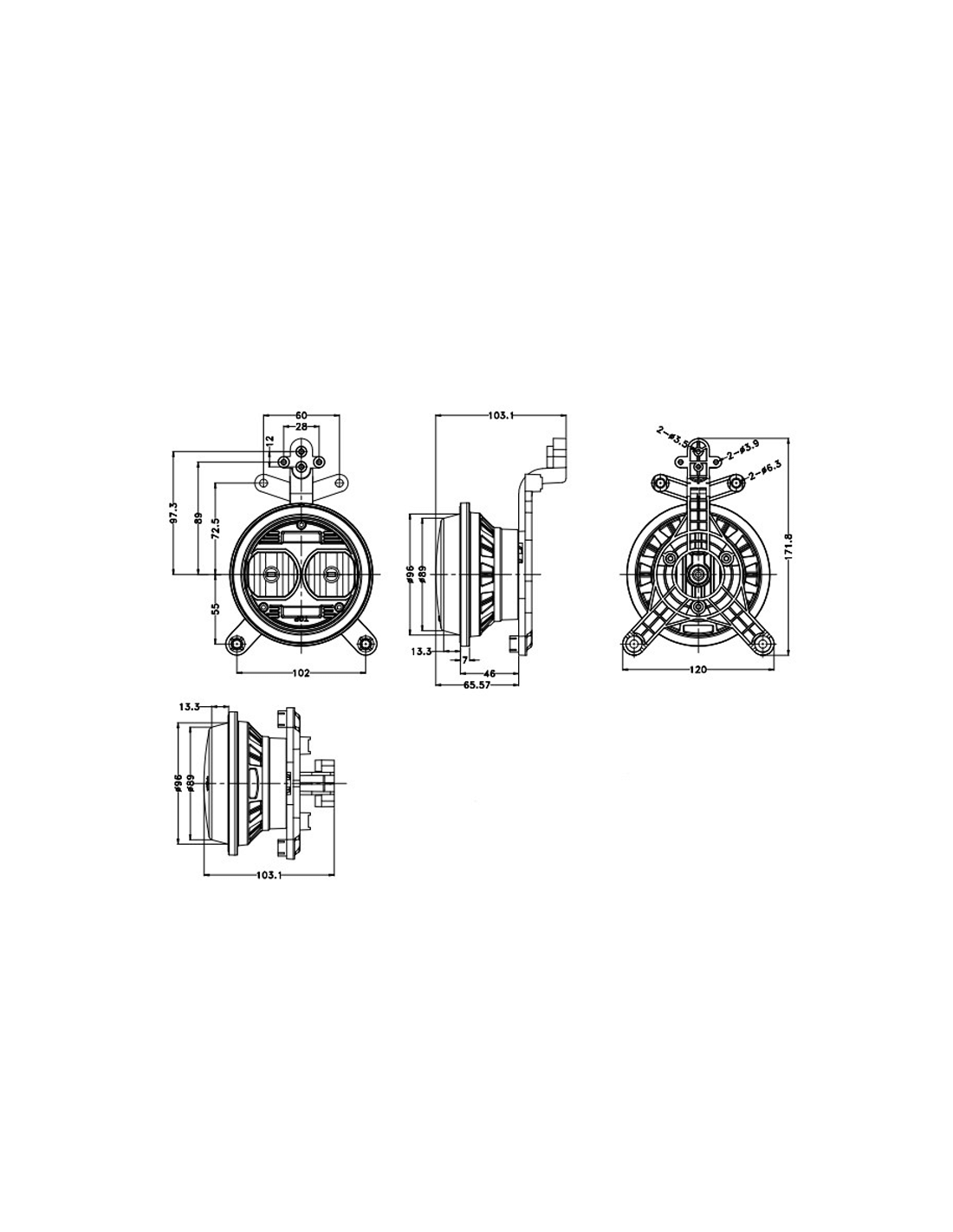 Rund-LED-Lampe mit großer Reichweite mit einer Leistung von 60W, eine Lichtintensität von 4.200Lm. Beinhaltet Stecker 9005 für die Installation, ist völlig wasserdicht IP67K und hat ECE, RoHs und E-Mark und ist geeignet für 12 und 24V, die Optik ist großes Licht. Dieses Modell von LED-Lampe ist perfekt für die Beleuchtung überprüfen Sie die Maße.