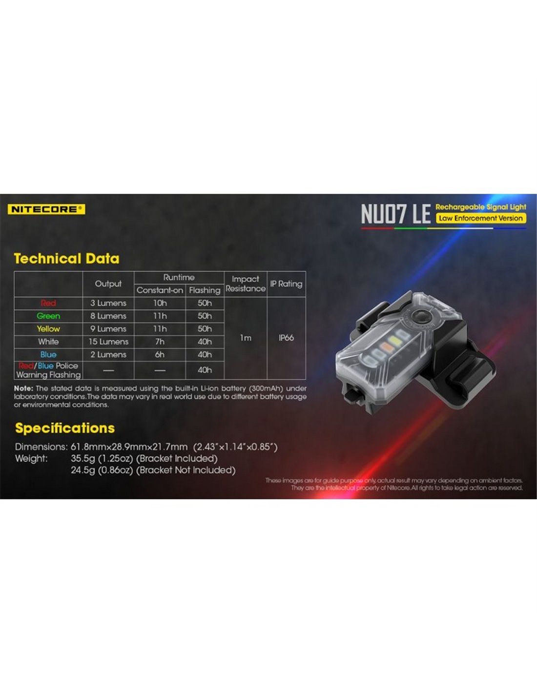 Technische Spezifikationen des taktischen Lichts NU07 LE