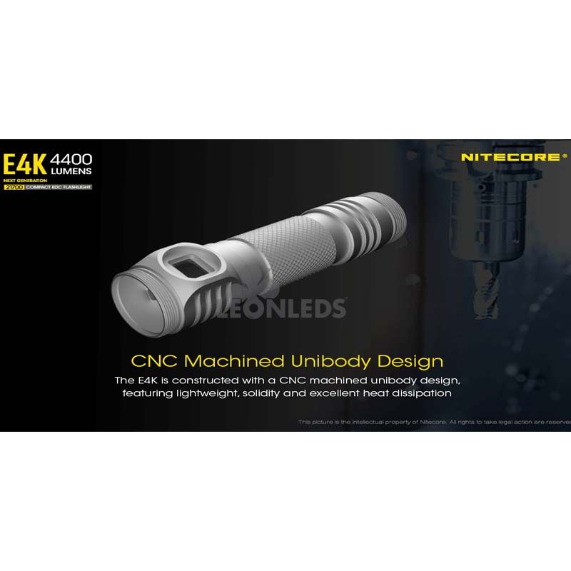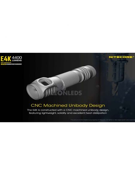 Die Taschenlampe Nitecore E4K 4400 ist leicht, robust und hat eine hervorragende Wärmeableitung. Außerdem hat sie einen Aufprallschutz von 1 Meter Höhe, da sie eine doppelseitige Beschichtung auf ihrer Linse hat.