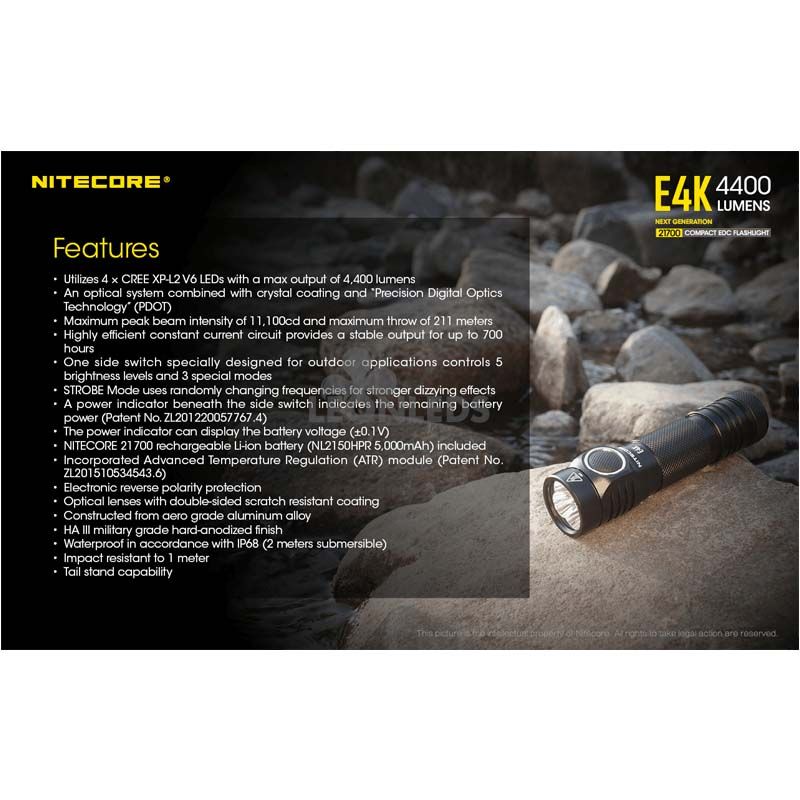 NITECORE E4K BEWERTUNG. MERKMALE DER NITECORE E4K TASCHENLAMPE: