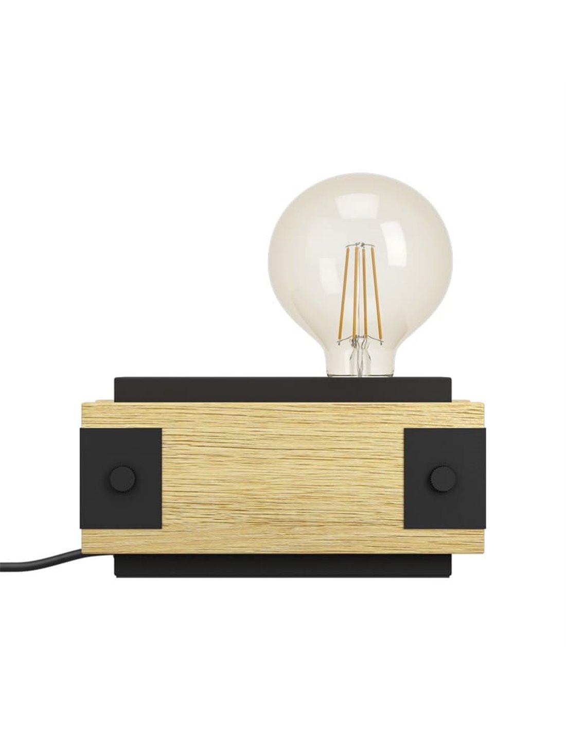 Die Tischlampe LAYHAM von Eglo kombiniert einen Rahmen aus schwarzem Metall mit Seitenpaneelen aus geflammtem Holz und schafft ein einzigartiges Design, das Wärme und Charakter in Ihre Räume bringt. Ideal für Vintage- und Industriedekoration, ist diese Lampe ein Blickfang in jedem Raum.