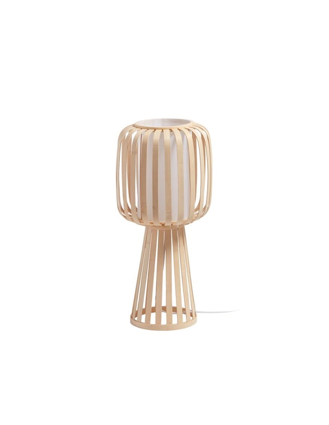 Die Tischlampe CINTIA von MDC kombiniert die Wärme des natürlichen Bambus mit einem weißen Innenschirm und bietet eine einladende und elegante Beleuchtung. Mit einer Höhe von 28 cm und E27-Sockel (Lampe nicht enthalten) ist sie ideal für Wohnzimmer, Schlafzimmer und Räume im Boho-Stil.