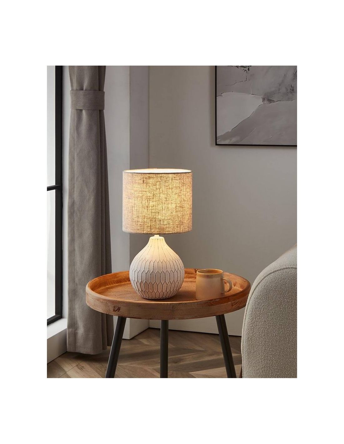 Entdecke die Tischlampe BELLARIVA 3, ein elegantes und modernes Stück, das jeden Raum in deinem Zuhause verwandelt. Mit einer runden Keramikbasis, die mit einem Boho-Muster dekoriert ist, und einem hellbraunen Textilschirm, ist diese Lampe die perfekte Ergänzung für eine zeitgenössische Dekoration. Ideal für Nachttische, Wohnzimmer, Esszimmer oder Flure, sorgt sie für eine warme und einladende Beleuchtung.