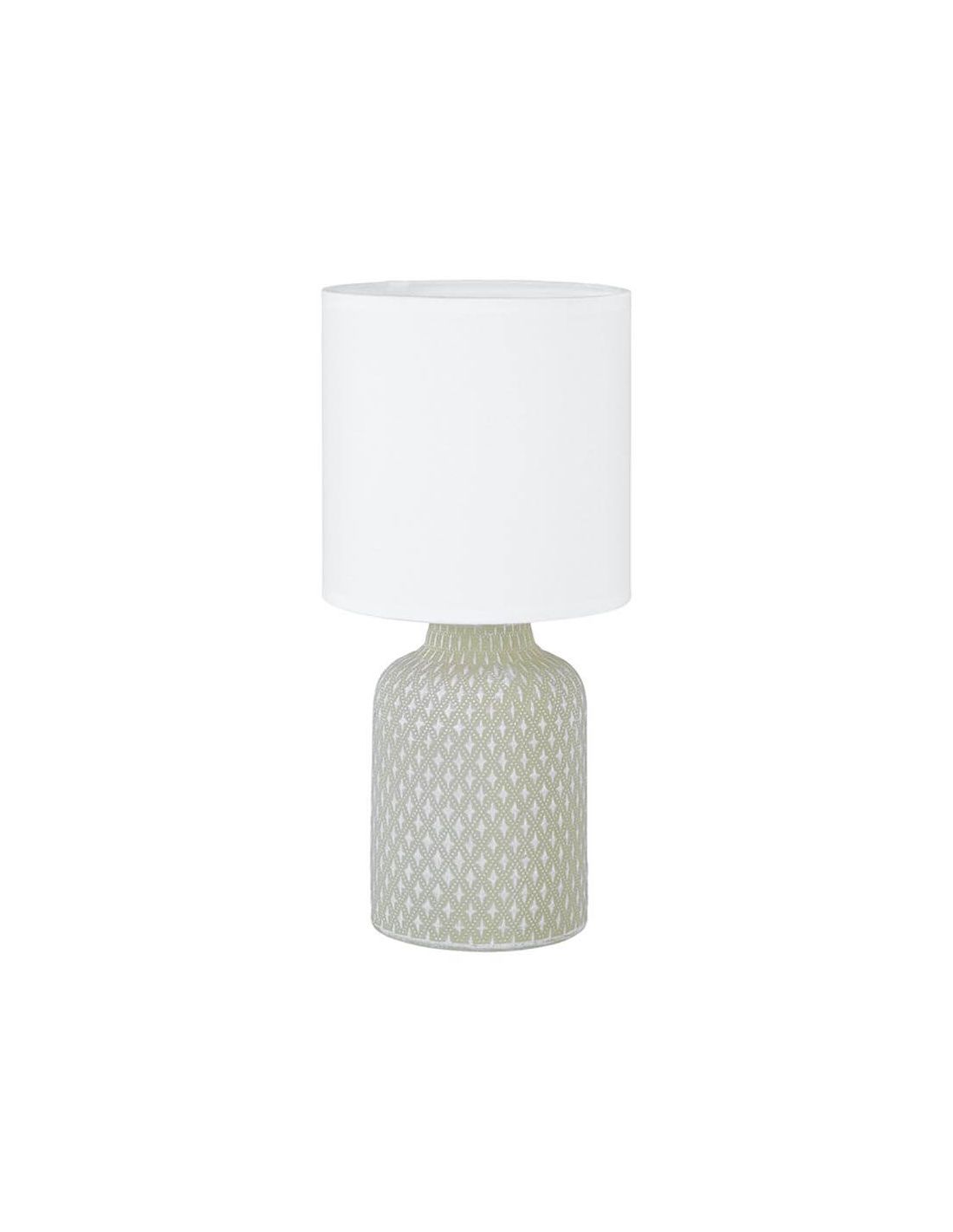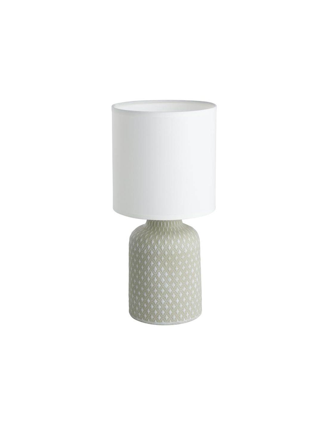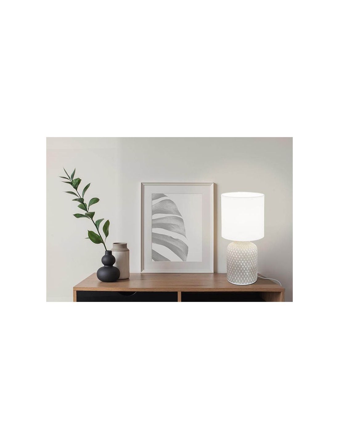 Tischlampe, Stehlampe, graue Keramiklampe, weißer Stoffschirm, Boho-Beleuchtung, moderne Lampe, Designerlampe, E14-Lampe, Nachttischlampe, Wohnzimmerlampe.