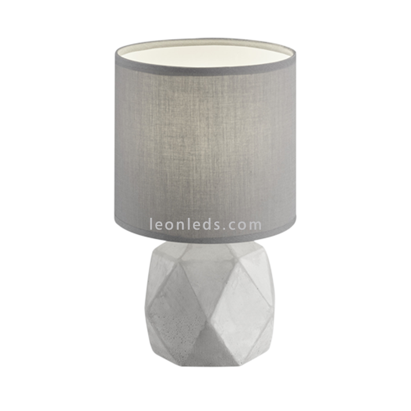 Tischlampe Betonserie Pike mit einem grauen Textilschirm, ausgestattet mit 1,5 Metern Kabel und einem Schalter am Kabel, um die Lampe ein- und auszuschalten, ohne sie von der Steckdose zu trennen. Zur Beleuchtung benötigt sie eine LED-Birne mit E14-Fassung; wir empfehlen, eine kugelförmige LED-Birne mit einer Leistung zwischen 4 und 7W und einer Farbtemperatur von 3000K oder 4000K zu installieren, die du hier kaufen kannst