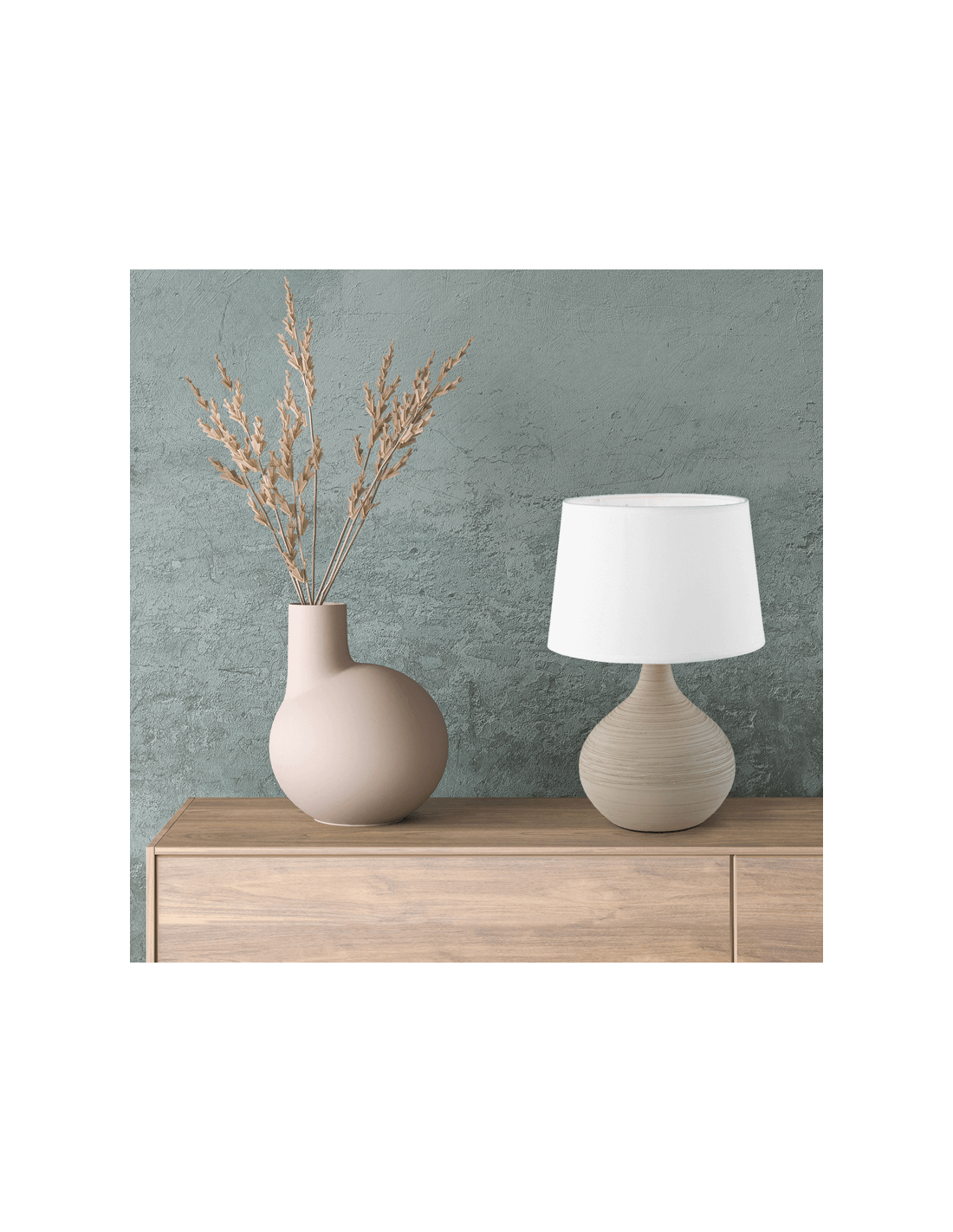 Diese Tischlampe Cappuccino aus der Martin-Serie hat ein modernes Design, die Struktur ist keramisch und der Schirm ist aus Textil. Im Inneren befindet sich eine Fassung zum Einbau 1 LED-Birne mit E14-Sockel. Der Schalter befindet sich am Kabel selbst und das Kabel ist weiß. Die Martin-Kollektion besteht aus Tischlampen in drei Farben: diesem Farbton, Braun und Weiß, finden Sie sie auf unserer Website in der entsprechenden Kategorie zum günstigsten Preis. Diese Cappuccino-Tischlampe ist ideal für moderne, avantgardistische und ibizenkische Dekorationen, sie bietet ein einzigartiges Design zu einem sehr erschwinglichen Preis, ohne die Qualität außer Acht zu lassen. Es wird empfohlen, sie mit doppelseitigem Klebeband oder Klettverschluss am Tisch zu befestigen, damit sie perfekt auf dem Tisch fixiert bleibt.