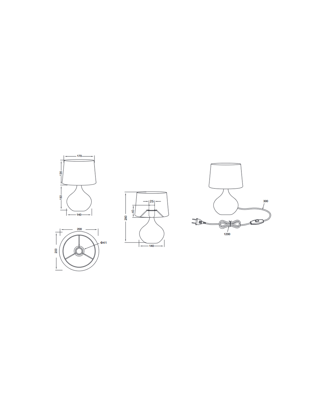 Die Tischlampe Cappuccino hat eine Höhe von 28,5 cm und einen Durchmesser der Basis von 14 cm, die Maße sind in einem der Fotos zu sehen. Im Inneren des Schirms befindet sich eine Fassung für eine Birne mit E14-Sockel, um 1 LED-Lampe mit E14 in Kugelform mit einer Leistung von 4 bis 6 W und einem warmen Lichtton von 3000 K zu installieren.