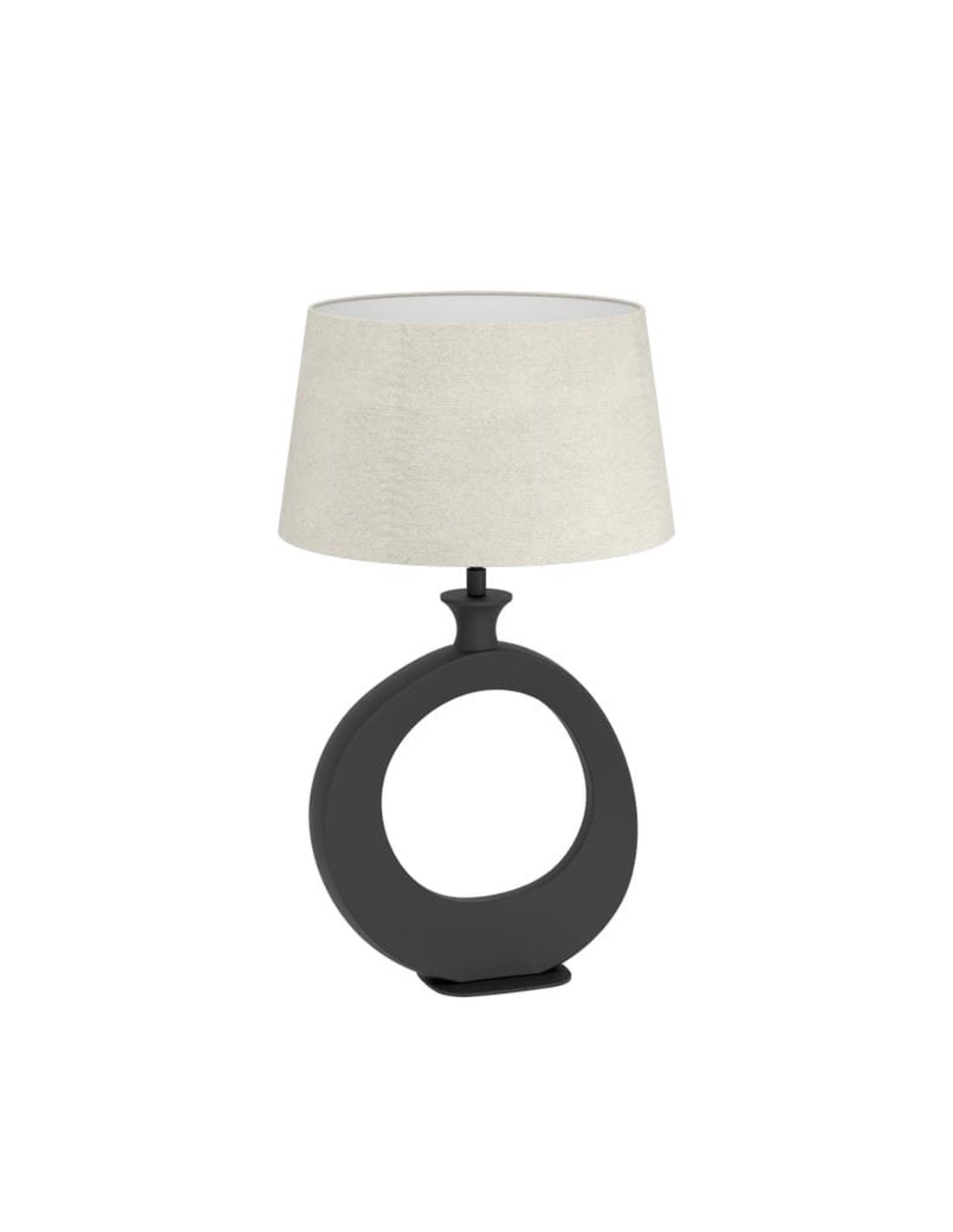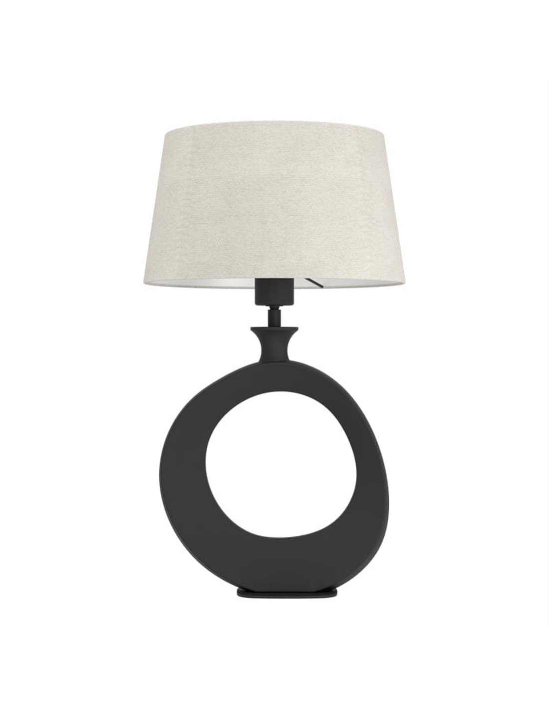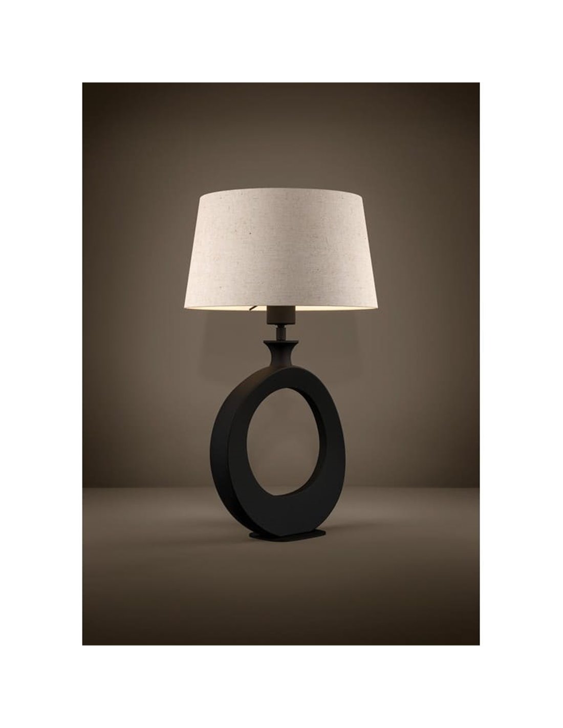Die Tischlampe DIEZMA kompakt besticht durch ihr skulpturales Design mit sanften Linien in schwarz, kombiniert mit einem Schirm aus naturbelassenem Leinen, der dem Raum Wärme verleiht. Sie funktioniert mit einer Birne E27 und eignet sich ideal als dekoratives Licht. Abmessungen: H 525 mm · Ø Schirm 300 mm · Fuß 115 × 90 mm.