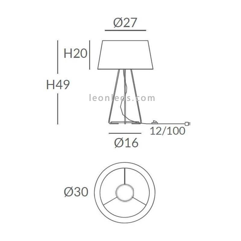 Sie ist perfekt als dekorative Tischlampe mit Stativ in jedem Zuhause, Hotel oder Hostel. Ihre Installation sollte in Innenräumen erfolgen. Sie hat eine Höhe von 49Cm und eine Breite von 30Cm. Es handelt sich um eine minimalistische und moderne Tischlampe, die in jedem Innenraum installiert werden kann, da sie einen Schutz gegen Wasser und Staub von IP20 hat.