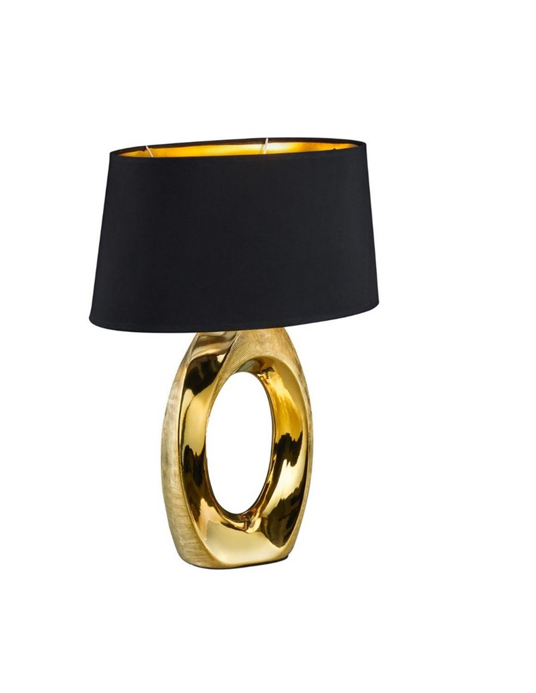 Große Tischlampe der Serie Taba im modernen und minimalistischen Stil mit goldenen und schwarzen Oberflächen, umfasst 1,5 Meter Kabel und einen Schalter im Kabel, benötigt 1 LED-Glühbirne mit E27-Fassung.