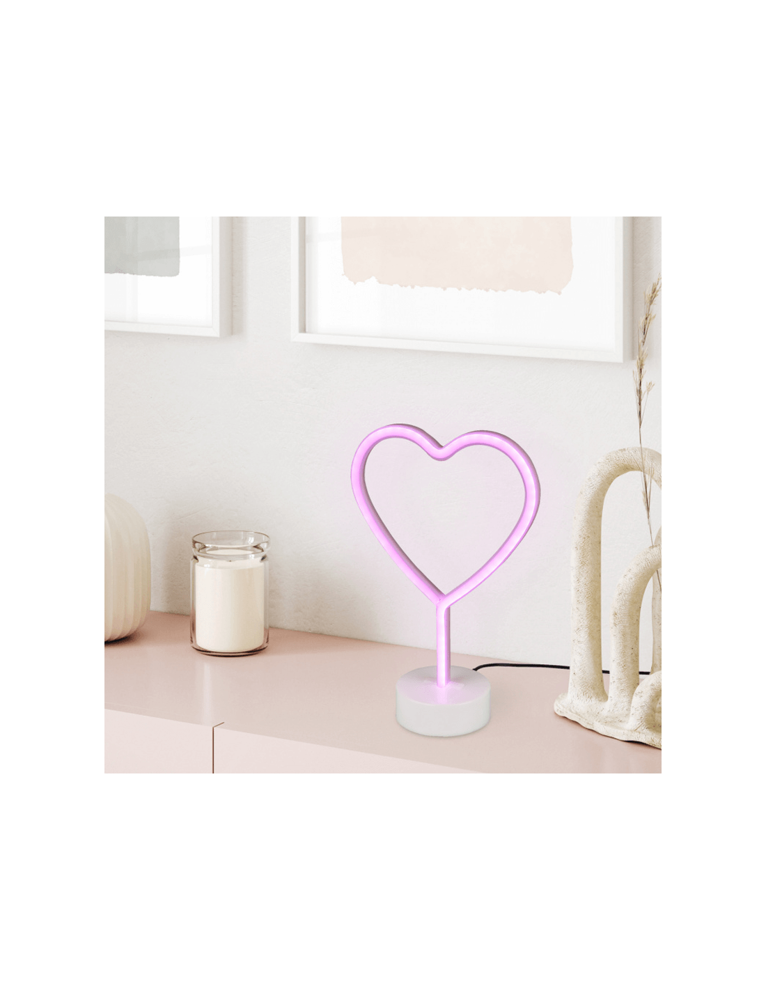 Diese Tischlampe mit Herzform kannst du auf dem Möbel im Eingangsbereich, im Wohnzimmer oder im Schlafzimmer platzieren... es ist ein Lichtornament. Du solltest sie in der Nähe einer Steckdose aufstellen, da sie für den Betrieb darauf angewiesen ist. Oftmals wird sie in Geschäften verwendet, um einen originalen Touch zu verleihen, der in Schaufenstern und Regalen fehlt.