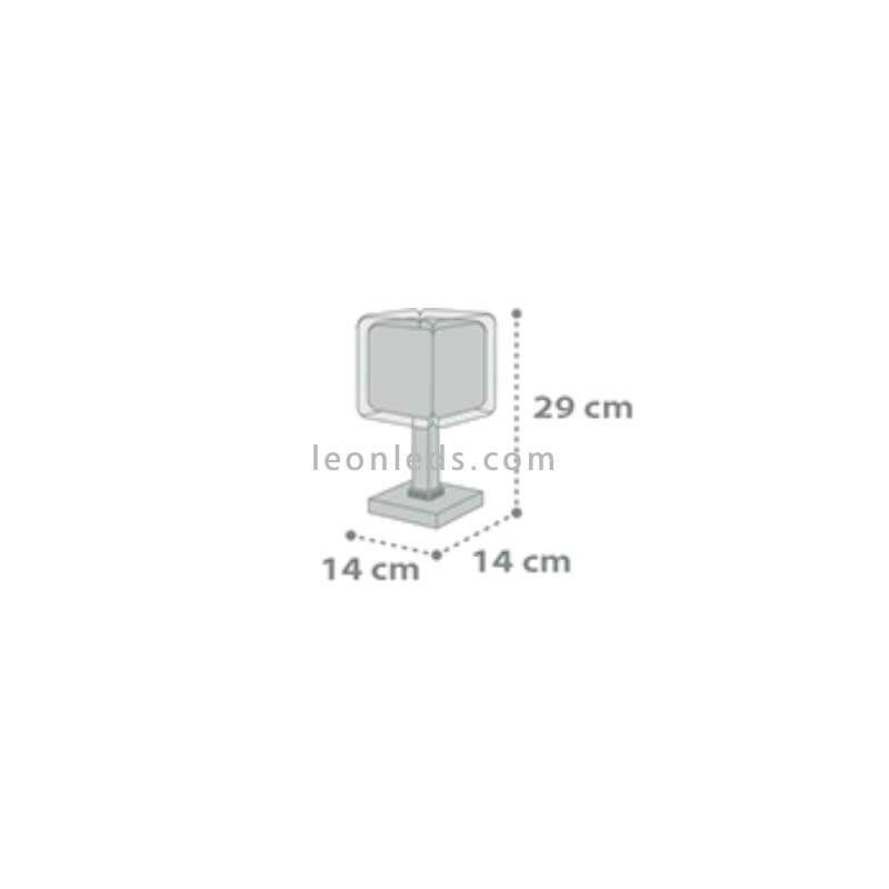 Diese Tischlampe für Kinder ist quadratisch und hat eine Höhe von 29Cm, eine Länge von 14Cm und eine Breite von 14Cm.