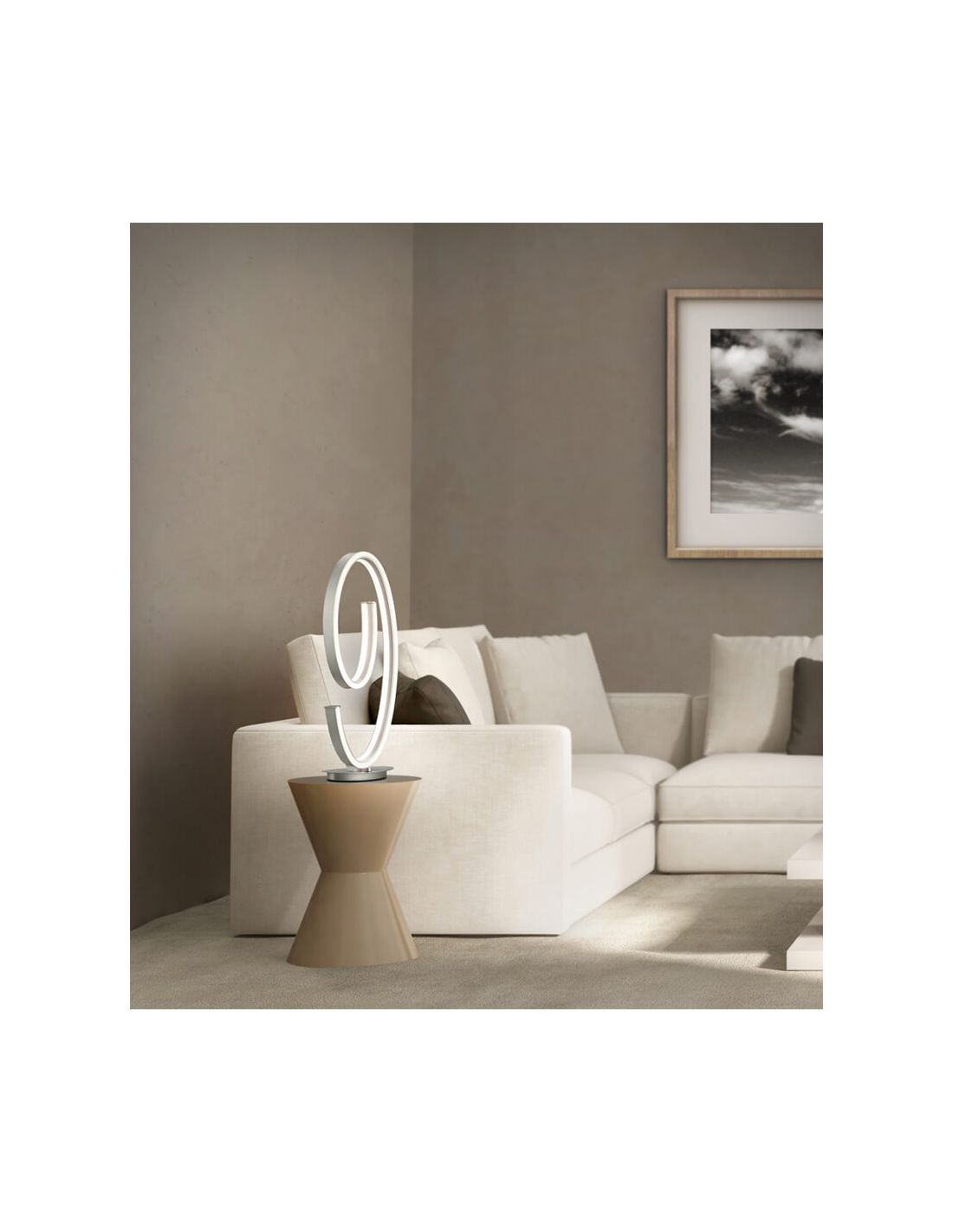 Dimmbarer Tischlampe LED CIOLA in mattem Nickel Finish, ausgestattet mit 21W und 2350 Lumen. Technologie Dim To Warm (2000K-4000K) und minimalistisches Design, ideal für Wohnzimmer, Schlafzimmer und Büros.