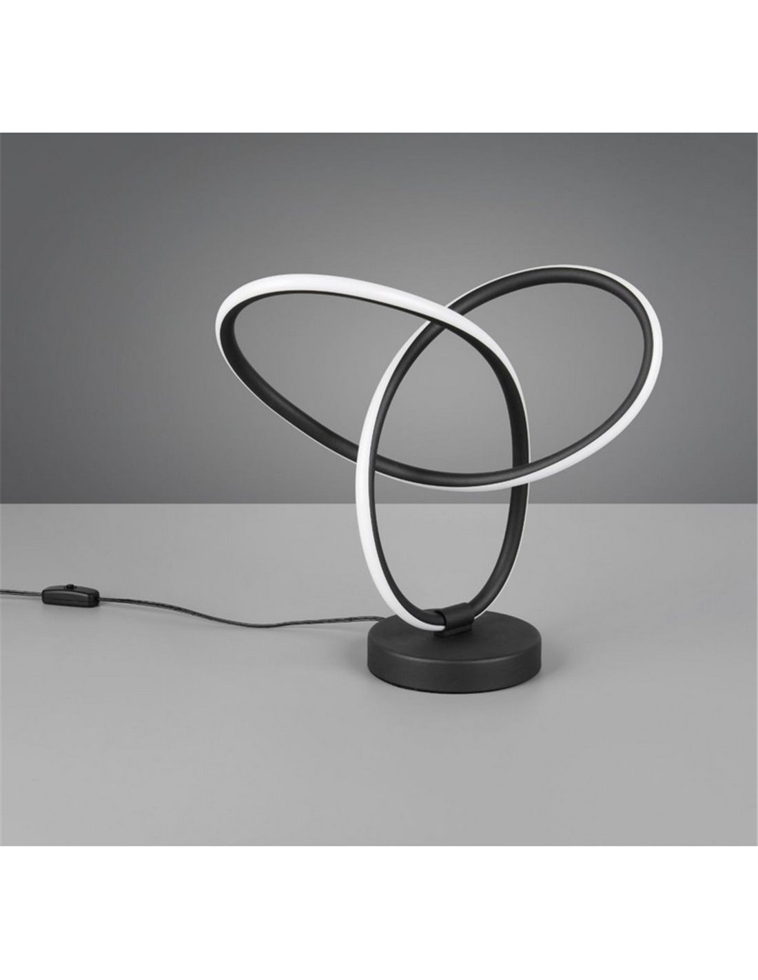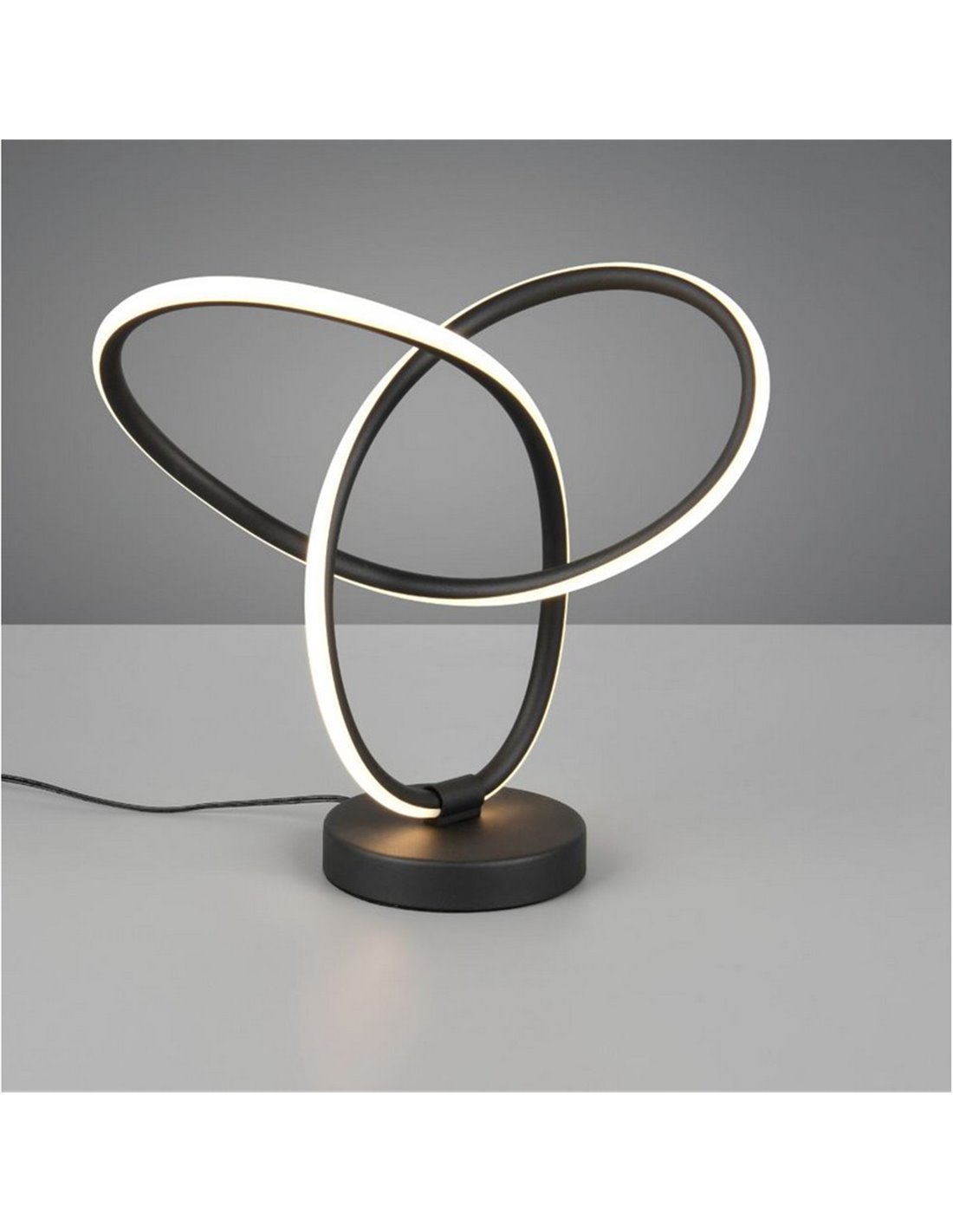 Die Tischlampe LED LANDO schwarz kombiniert skulpturalen Design und Licht-effizienz in einem modernen Stück mit doppeltem, ineinandergreifendem Ring. Ihr Licht blanco natura des 4000K mit 850 lumen bietet ein angenehmes Licht, ideal für Schlafzimmer, Wohnzimmer oder Büros. Sie beinhaltet Schalter im Kabel. Schutz IP20.