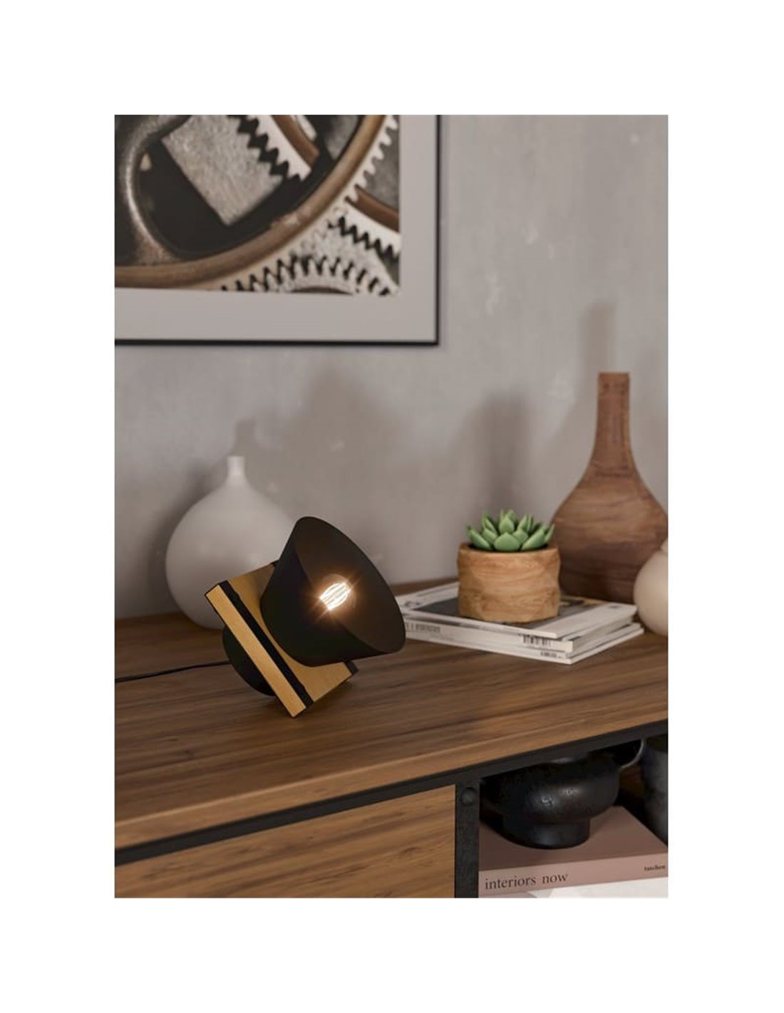 Perfekt für Schreibtische, Nachttische oder Regale, ergänzt das Design um einen industriellen Touch.