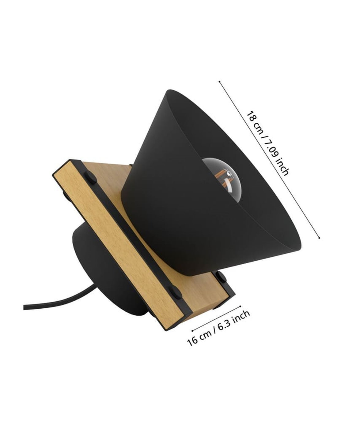 Die Tischlampe MACCLES von Eglo kombiniert einen Schirm aus schwarzem Stahl mit einem Holzfuß und schafft so ein industrielles Design, das perfekt zu modernen Dekorationsstilen passt. Ihre Materialkombination verleiht Ihren Räumen einen besonderen Akzent und bietet eine einladende Beleuchtung für Ihr Wohnzimmer oder Schlafzimmer.